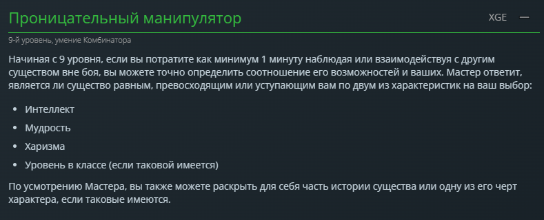 Четвертые (самые редкие) почти не обладают классовым ресурсом, как правило их особенности привязаны к каким то определенным узким условиям (сник атака плута требует особых условий атаки, природная осведомленность следопыта требует особой местности и так дальше)