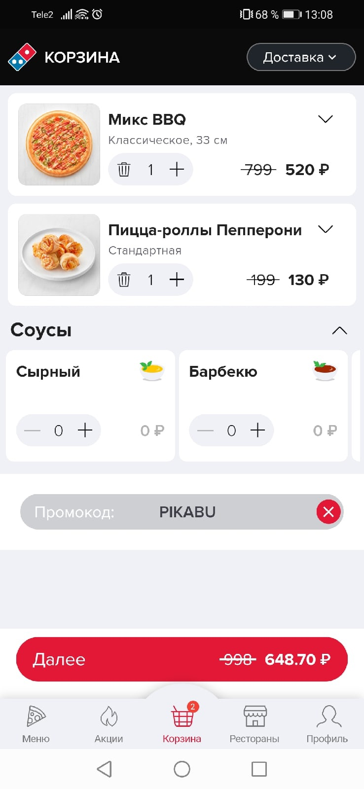 После такой крайне занимательной истории меня уже было не остановить. Я отправился проверять другие промокоды, а также параллельно позвонил в поддержку Едадила (уже даже не помню, где я взял их номер, если честно).