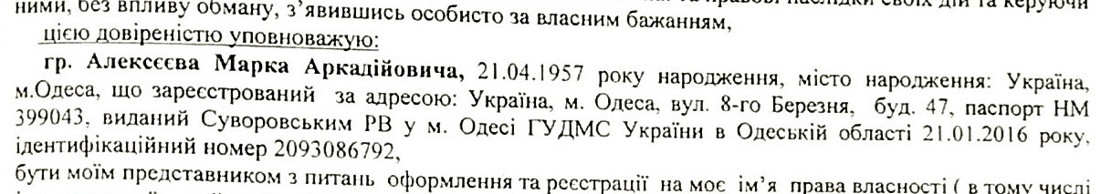 Алексеев Марк Аркадьевич, 21.04.1957 г.р. выступил представителем продавца по доверенности оформленной на основании паспорта НМ № 399043.