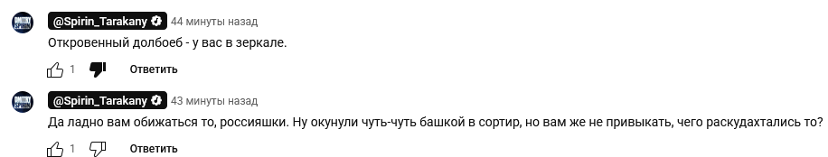 354 izoiwa Ответ на пост «Как уехавший панк нас в лапти обуть пытается»11 2 месяца назад Там отдельного внимания заслуживают комментарии автора Кто-то пошутил про то, что это Украина в ролике Русский рок Группа Тараканы Антироссийская политика Политика Россия и Украина Пропаганда Предательство Русофобия Волна постов Негатив Ответ на пост 35 15 7 1 Ещё 0