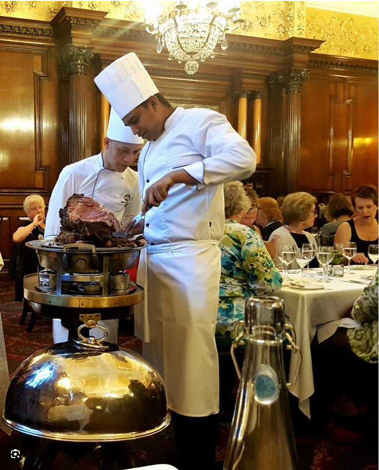 Разблокировано воспоминание, как попал я однажды в пафосный ресторан аж в самом ЛондОне - Simpsons on the Strand. Престижная улица Strand. Рядом ювелирные магазины и Отель Savoy. И бомжи устраивающиеся на ночлег в ближайшей подворотне. Ну зашли мы, значится, в ресторан - высокие потолки, пафосная прислуга, деревянные панели и т.д. Ресторан забит под завязку, мы туда попали только потому что были записаны ранее. Первый звонок прозвенел когда официант принёс меню. Оно было точь в точь как в ресторане у Юленьки - размером с почтовую открытку. Выбор блюд был огромный - штук 5 закусок, и одно или два основных блюда. Поскольку я терялся в таком огромном выборе то долго думал, что же заказать. Заказал. Второй звонок прозвенел, когда официант принёс мне заказанную закуску. Это блядь была обычная картоха, варёная с кожурой и слегка подавленная вилкой, типа пюрешечка, с каким-то белым соусом. Сказать, что я охуел, это ничего не сказать. Но хер его знает, как тут у этих лордов принято, может эта картоха у них ниибаццо деликатес. Но нет. На вкус это было как варёная картоха с кожурой и каким-то соусом. Ну, думаю, хоть с основным блюдом должно же быть всё ок. Подходит, значит, официанты с такой большой тележкой под которой горит пламя. Открывает он бокс на тележке, а там внутри огромный кусок говядины. Пахнет вкусно. Ну, думаю, - отлично! Ща пожру! Отрезают мне от этого куска два прозрачных кусочка этой говядины и любезным тоном интересуются, не желает ли мистер соус к мясу. Изрядно охуевших от этих говяжих кусков, толщиной с бумажный лист, мистер соглашается. После чего эту несчастную говядину щедро заливают обычным тёртым хреном!
