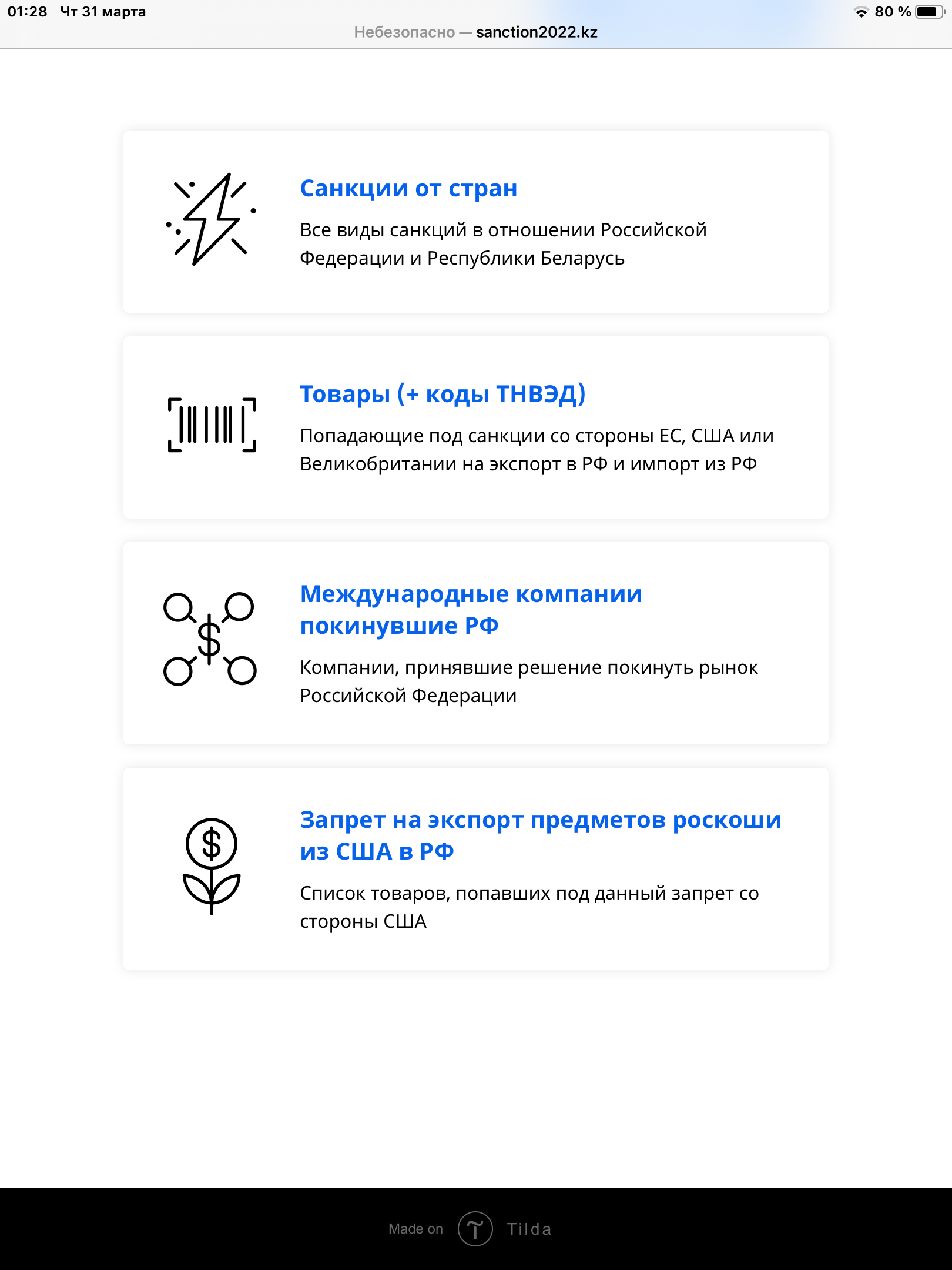 По поручению оперштаба под председательством премьер-министра был создан удобный путеводитель для бизнеса, где собрали всю информацию о товарах, запрещенных для экспорта и импорта в Россию и Беларусь, и санкционных ограничениях со стороны стран Европы и США. Министр отметил, что списки товаров на сайтеhttp://sanction2022.kz/main?fbclid=IwAR0nhowMlz6fboRF21p9GoE... будут обновляться.