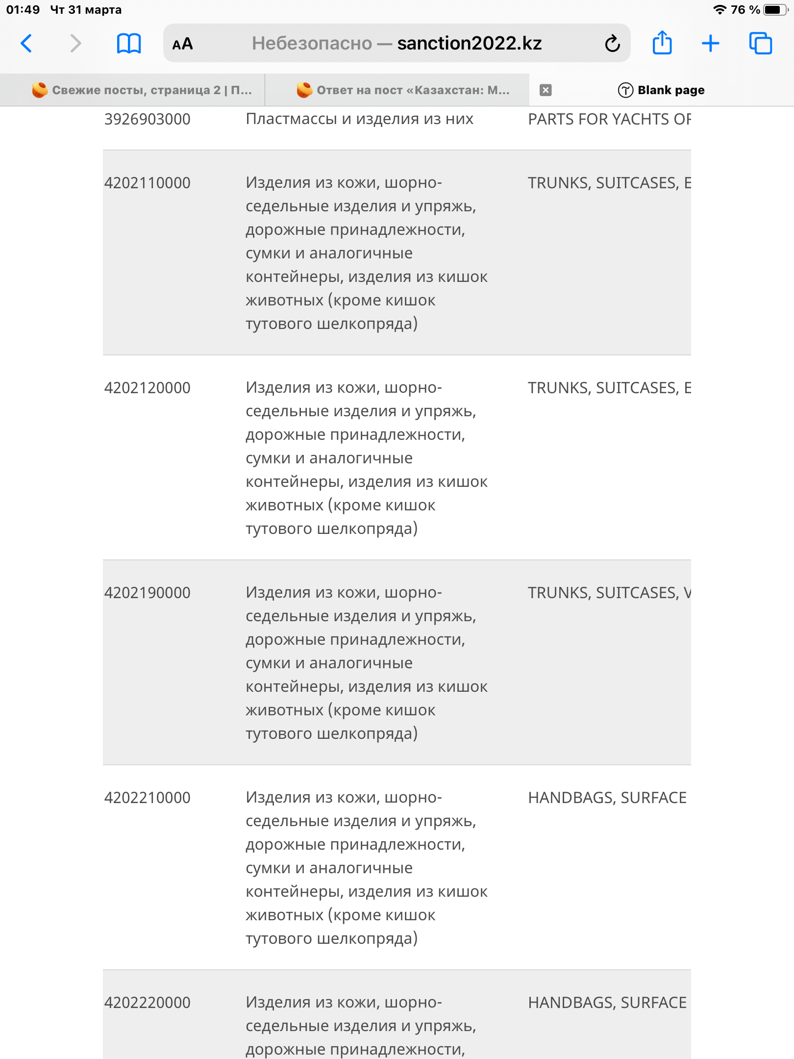 По поручению оперштаба под председательством премьер-министра был создан удобный путеводитель для бизнеса, где собрали всю информацию о товарах, запрещенных для экспорта и импорта в Россию и Беларусь, и санкционных ограничениях со стороны стран Европы и США. Министр отметил, что списки товаров на сайтеhttp://sanction2022.kz/main?fbclid=IwAR0nhowMlz6fboRF21p9GoE... будут обновляться.