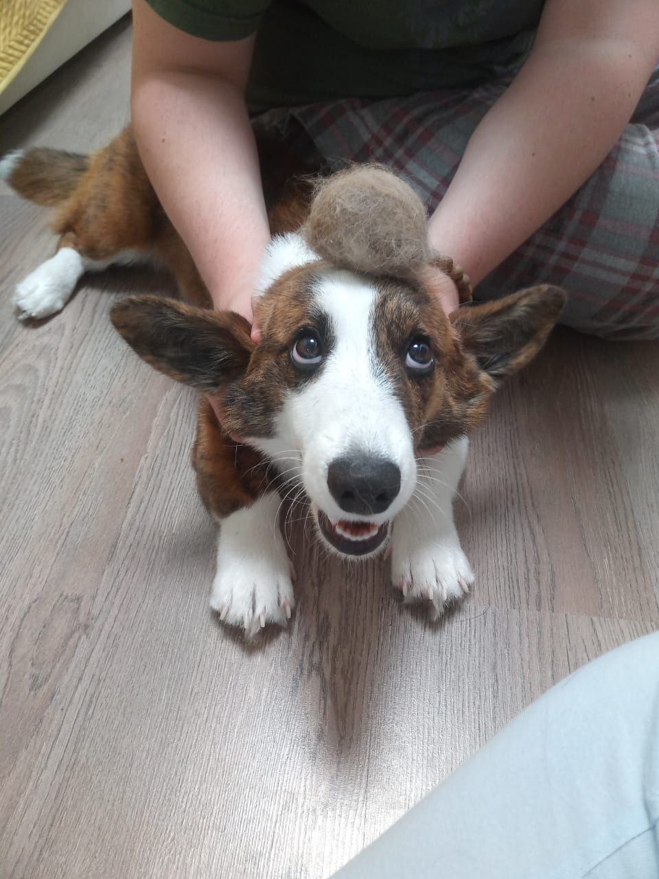 На фото немного шерсти после вычесывания: