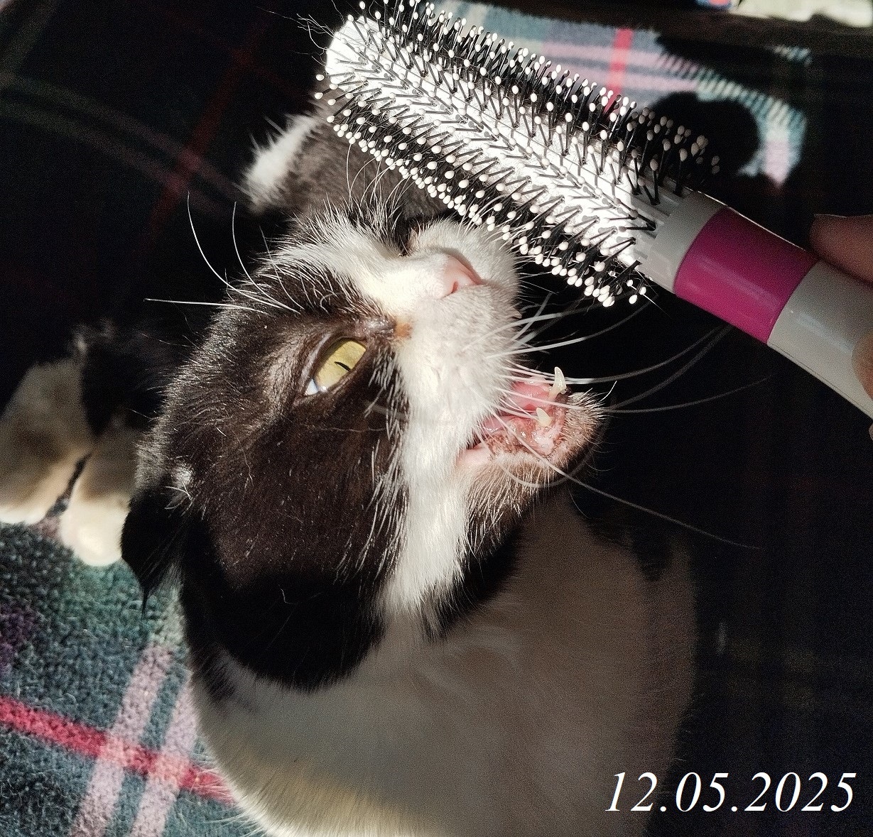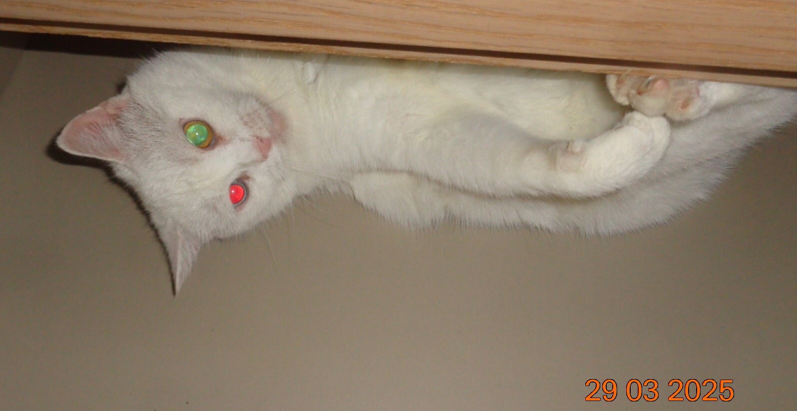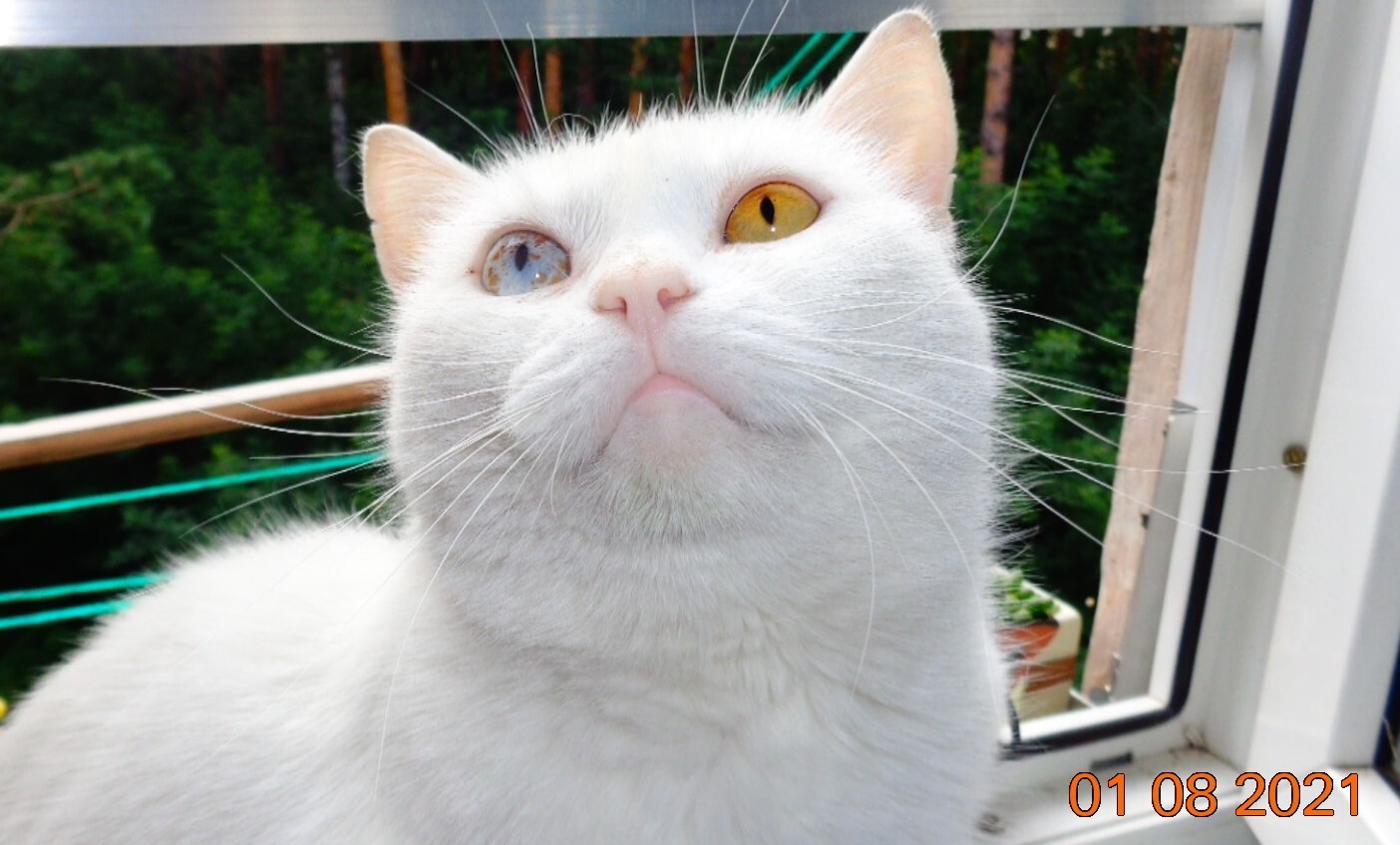 Вторую я принесла в июле 2021, умирающую крупную, очень тощую (фото 2). И блохастую. На каждом её кв. сантиметре до 5 штук. На следующий день в клинике нашли фиброз печени - не жилец. Вытащила (фото 3), откормили, но стали воспаляться лимфоузлы, с каждым разом всё чаще. Были проблемы со своим здоровьем, средства на обследование поднакопили только к концу 2023. Анализы от 07.01.24 установили прогрессирующую форму ВЛК у белой, у шотландки ПЦР РНК на ВЛК отрицательный в тот момент. Дальше у белой все круги ада от ВЛК: увеит, воспаление зубов, гломерулонефрит с гипертензией... Наверное, ей около 10 (фото 5).