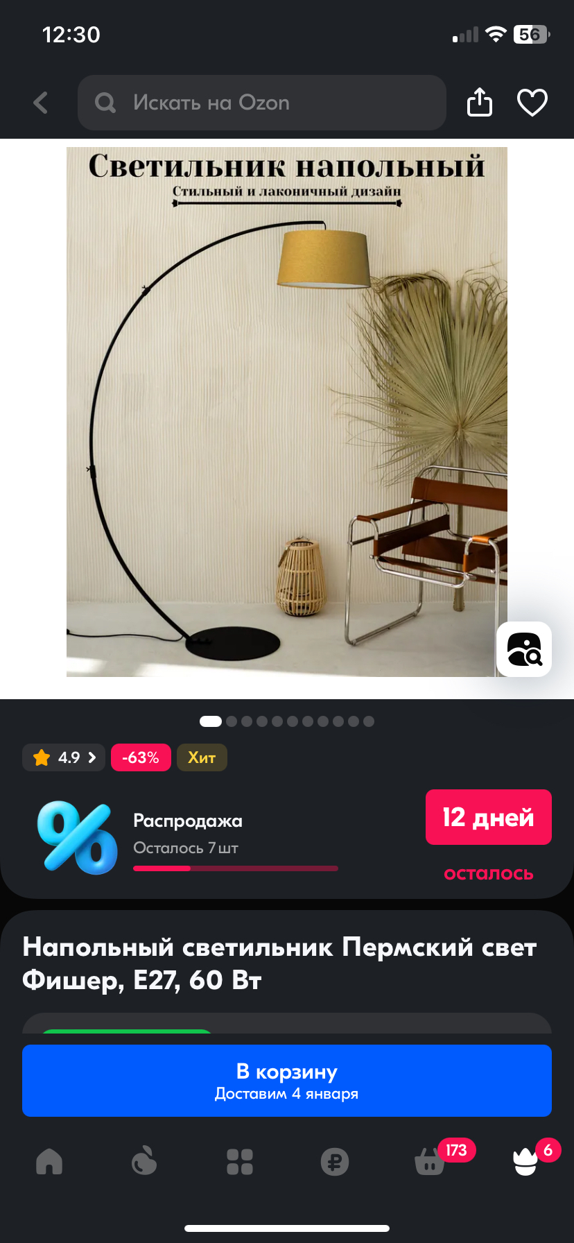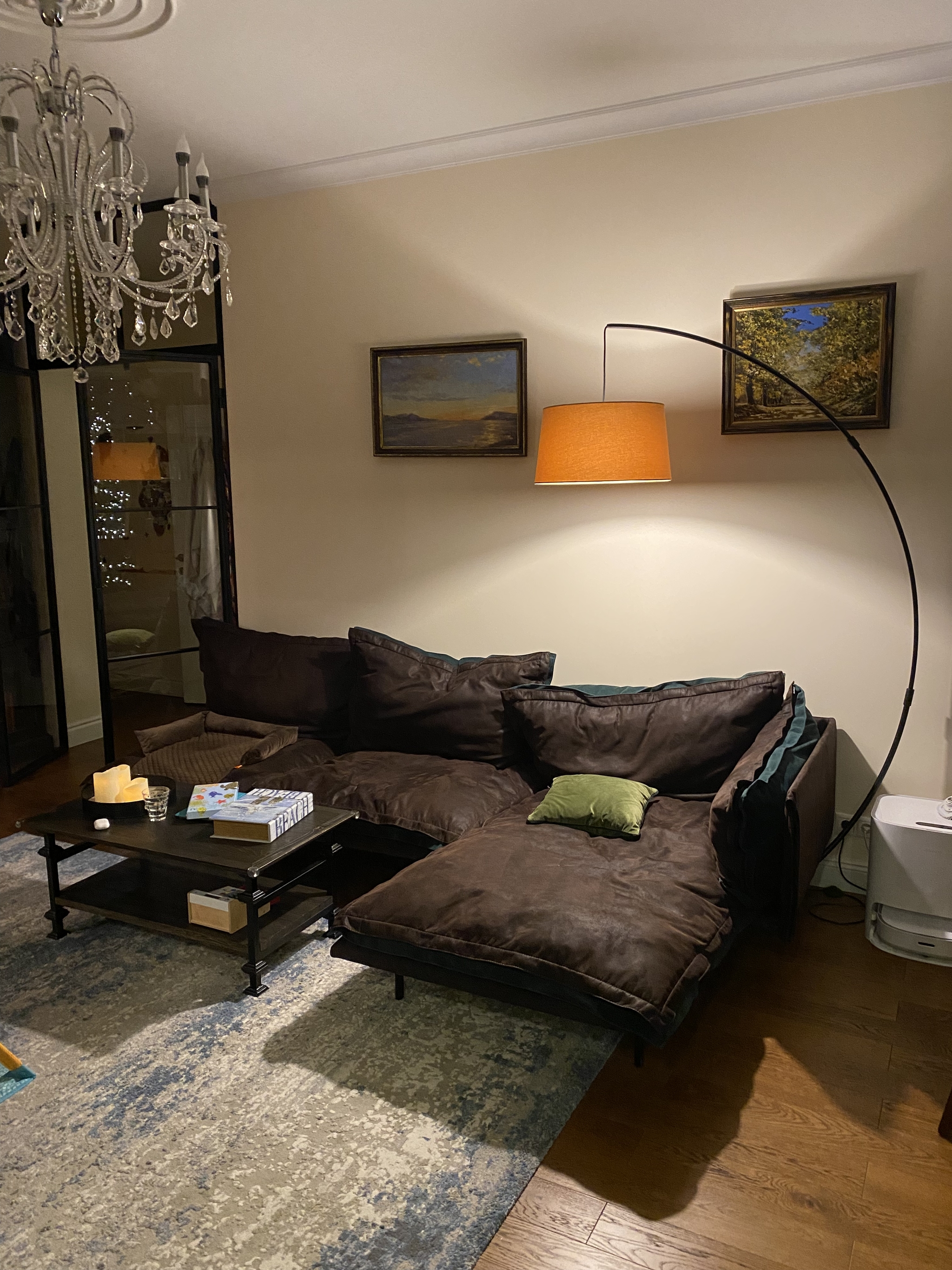 В ноябре купила на озоне торшер, уж больно мне понравился его оранжевый цвет, идеально для нашего интерьера.