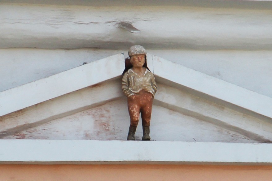 Есть такая городская легенда, что раньше этот дом был купеческий. К сожалению, имя владельца в истории не сохранилось. Известно лишь, что у купца был маленький сын – по всей видимости, единственный, его гордость и надежда. Но случилось горе – мальчик утонул. Безутешный отец заказал фигурку в память о сыне и украсил ею фасад дома.