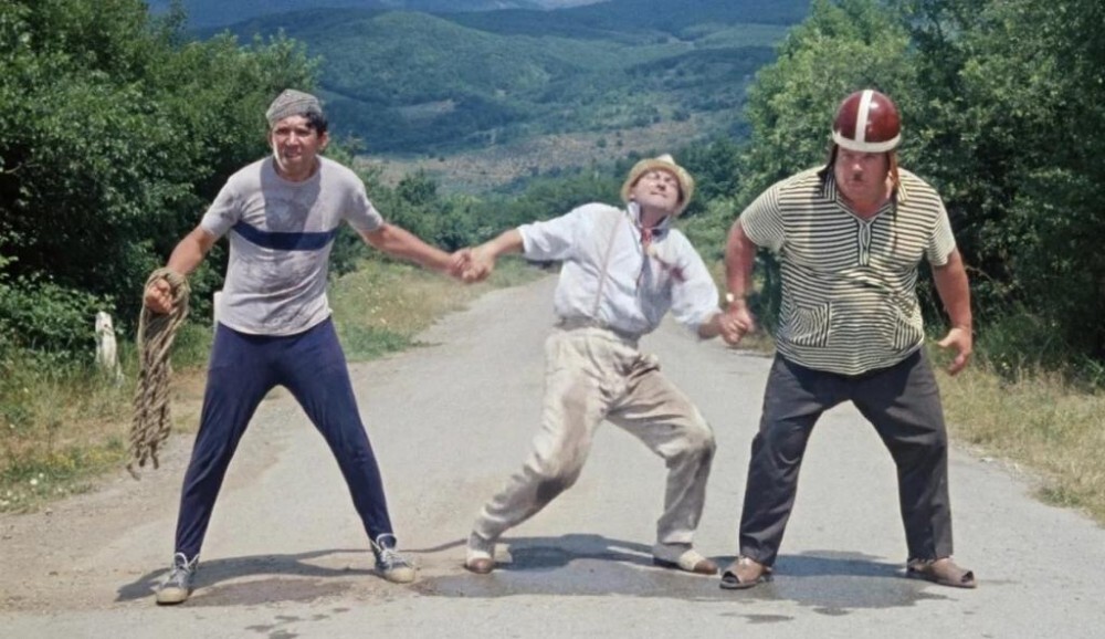 На складе вижу картину, почти как в "Кавказкой пленнице", где Моргунов и Никулин, держали посередине Вицина, а тот сопротивлялся. Здесь же "Моргунов" (нач.склада) держал двух извивающихся "Вицинов"(грузчиков)