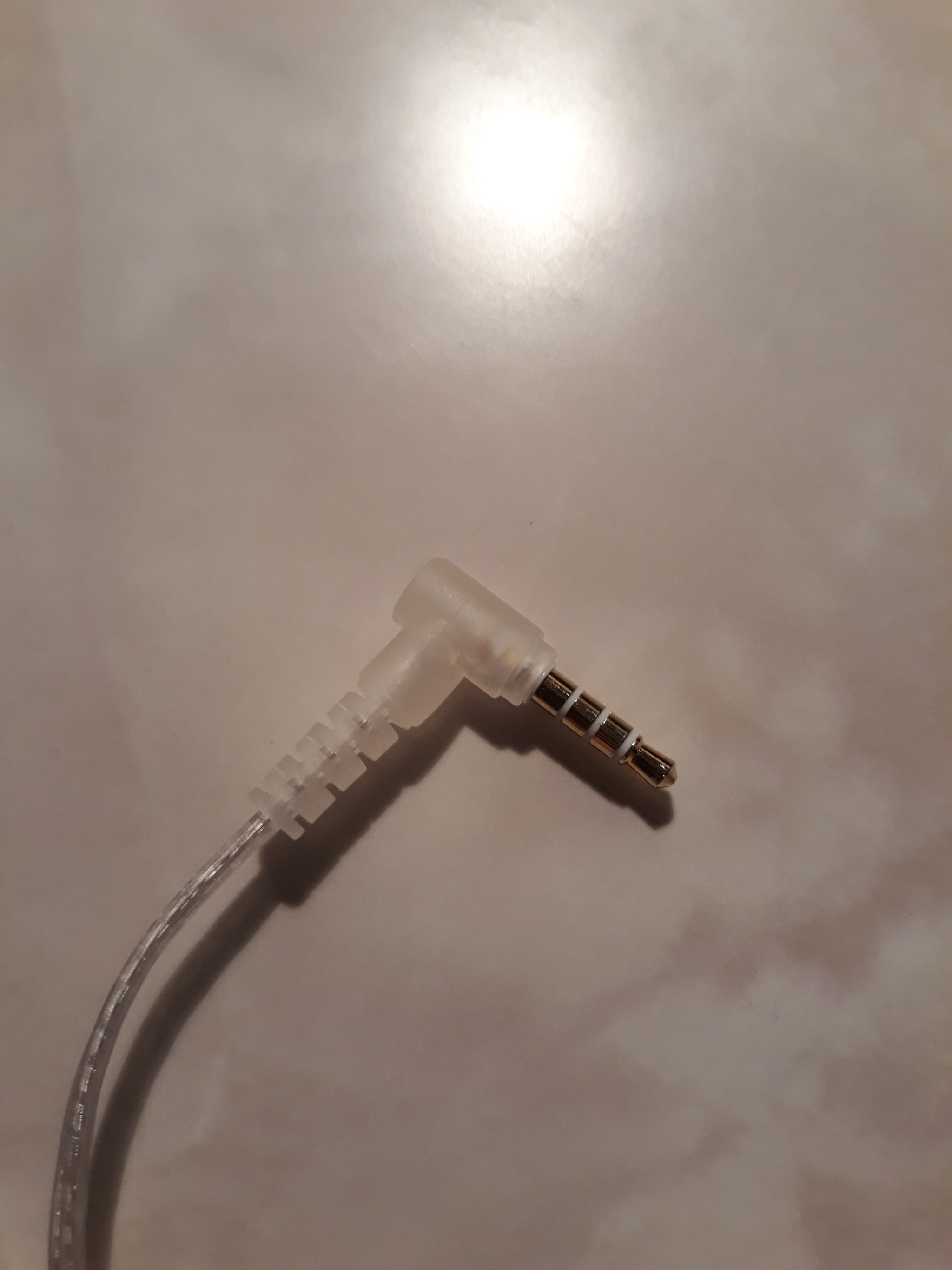 Сам провод. Прозрачный и белый с серебряным цветом ниток. Сам материал меня как-то не интересовал. Штекер выглядит позолоченным