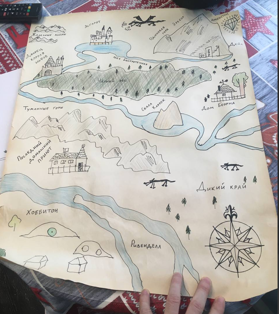 Но, напомню, это 1998 год, год рассвета в нашем регионе группы "Король и шут", до нас добрался их "Акустический альбом", а с ним и "Камне по голове", и "Король и Шут". К чему, казалось бы, это я?) Дома с детства была хорошая музыка, помимо старой хорошей советской музыки, папа слушал Высоцкого, мама же Джо Дассена, Шарля Азнавура и других французских шансонье, я со второго класса начал заниматься в музыкалке по классу фортепиано - вкус в музыке в нашей семье был, пластинки с популярными исполнителями тоже периодически покупались. Благодаря утренним (да и не только) программам на ОРТ/1 канале я узнал Шевчука, Алису, Воскресенье, Кино, раньше частенько показывали живые концерты. Там же я узнал о таких группах, например, как Свинцовый туман, Манго-Манго и другие, чуть позже пришла волна рокопопса, но не о нём разговор. На почве хорошей рок-музыки и в поисках послушать что-то новое из русского рока (к зарубежному року я, к сожалению, пришёл чуть позже), я сдружился с пацанами из параллельного класса - эти уже вовсю знали и о КиШе, и о Толкине, само собой, играют в какие-то настолки и прочее - целый новый мир для меня!!. И вот один из них рассказывает, что есть же ещё Властелин колец, 3 тома!!! Господи, да для меня бОльшим потрясением в жизни было только то, что по нему потом начали снимать кино))) И вот я лечу домой с 2 новыми для меня кассетами КиШа и первым томом Властелина колец! По пути были муки выбора - первым делом послушать или почитать?! Толкин победил, так как утром дорога в школу была всегда с подаренным сестрой на ДР кассетным плеером AIWA))) В общем, ближайший месяц я успел перечитать книгу раза 3-4, и батя, тоже любитель почитать, успел разок, пока я ездил в музыкалку))) Потом, с появлением в нашей семейной библиотеке фентези, были постоянные бои за новые книги))) Все мои тетрадки были исписаны и изрисованы не только названиями любимых групп, но теперь и рунами, картами Средиземья, рисунками Одинокой горы и драконами... Это было 25 лет назад...
