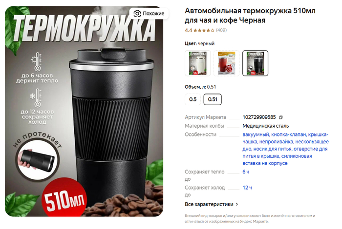 3. Термокружка 510 мл = 539 руб (цена может отличаться в зависимости от аккаунта)