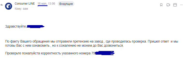 Такой подробный ответ, такое внимание к обращениям (ответ уже через час, как будто позвонила старшему менеджеру, ей богу), а еще беспокойство, что дозвониться не получается, - вот это компания здорового человека.