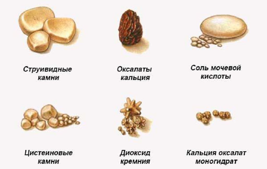 - кальциевые камни (смешанные оксалаты/фосфаты кальция, оксалаты кальция, фосфаты кальция) — по разным данным, составляющие 70–80% из общего числа;