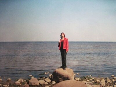 Мы прогулялись день по Питеру и Петергофу, я фотографировал, аппарат плёночный, селфи сделать не догадался, фотографировал только её: