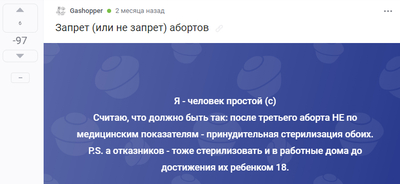 Если человек не может ответственно подходить к вопросу зачатия - его следует от этой возможности оградить.