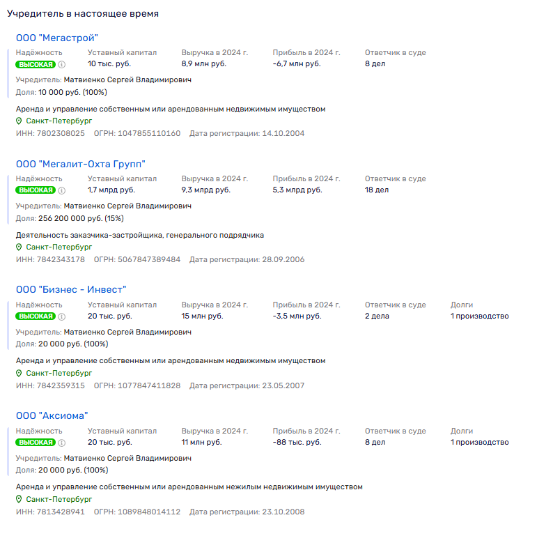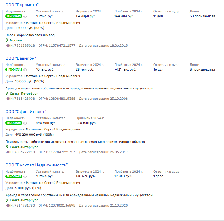 Учредитель: Матвиенко Сергей Владимирович Доля: 490 200 000 руб. (100%)