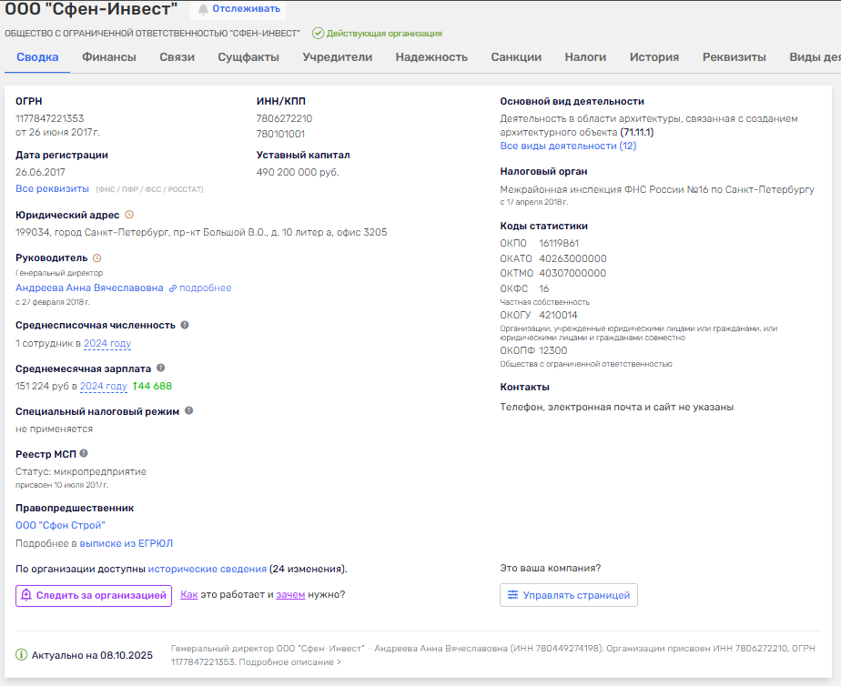 основной ОКВЭД: Аренда и управление собственным или арендованным недвижимым имуществом (68.20), учредитель Матвиенко Сергей Владимирович Доля: 10 000 руб. (100%)