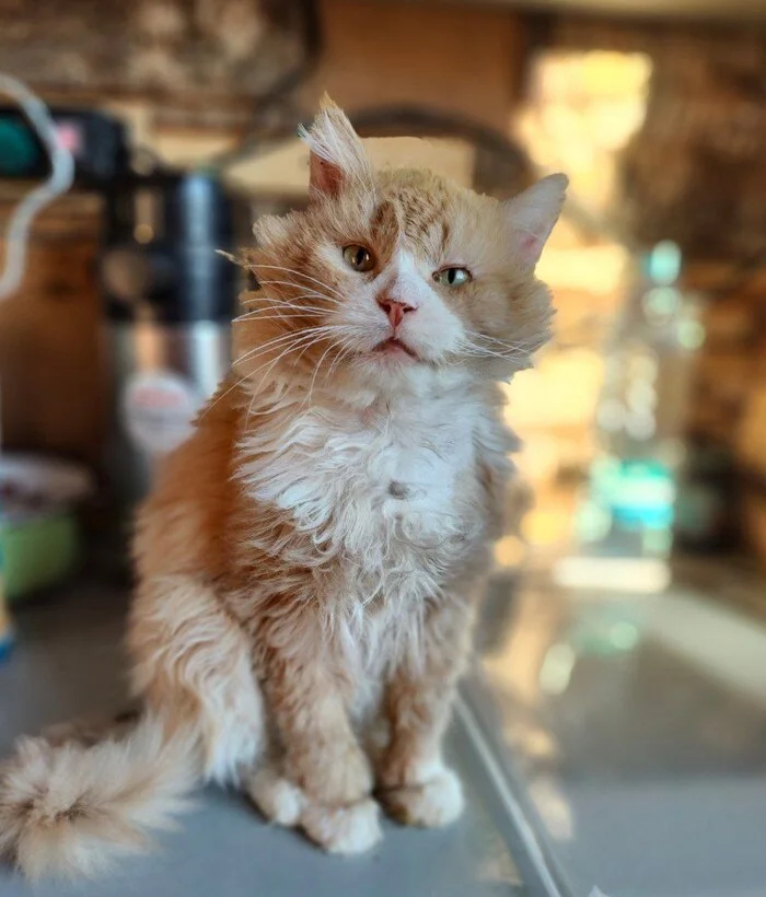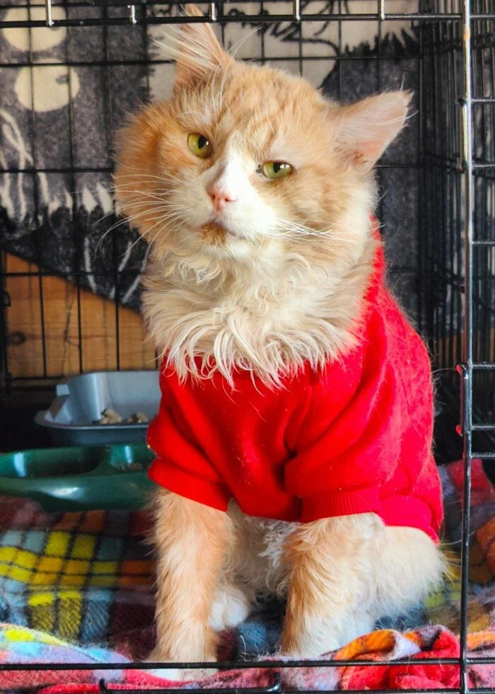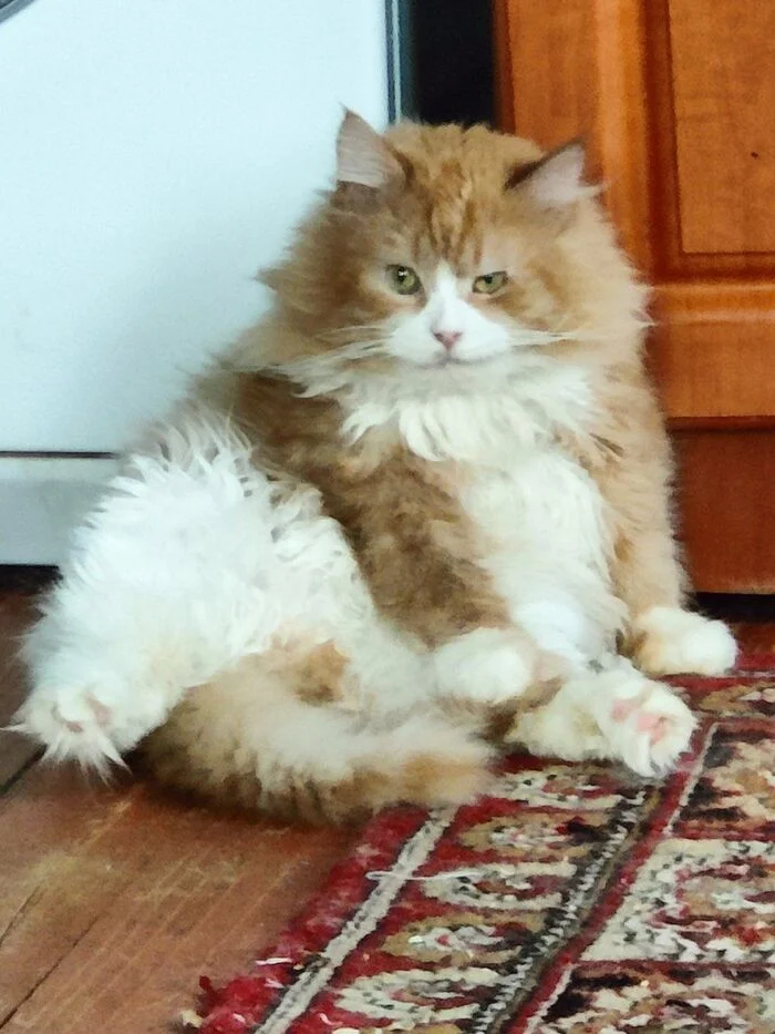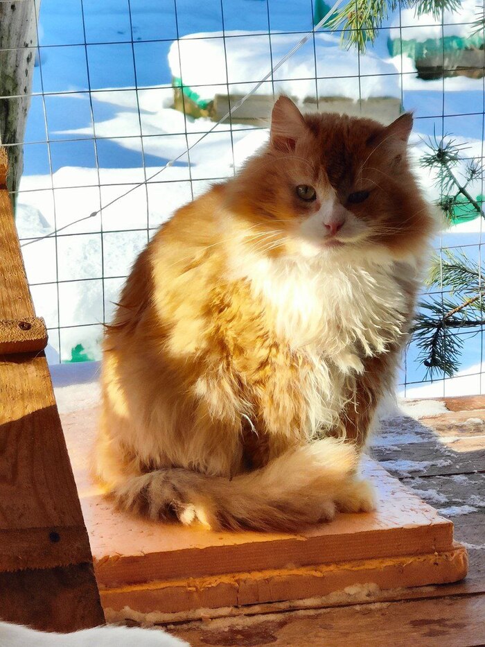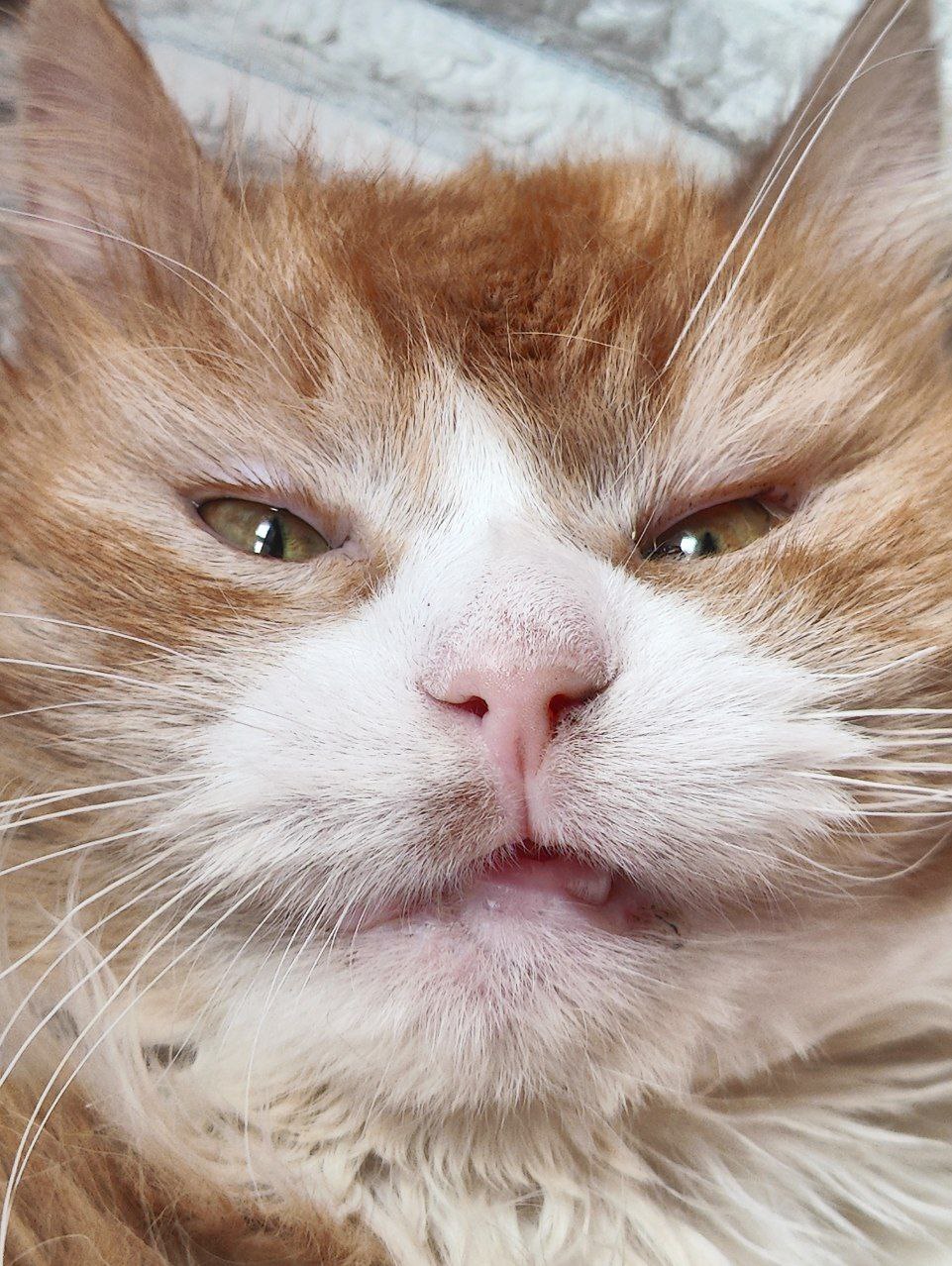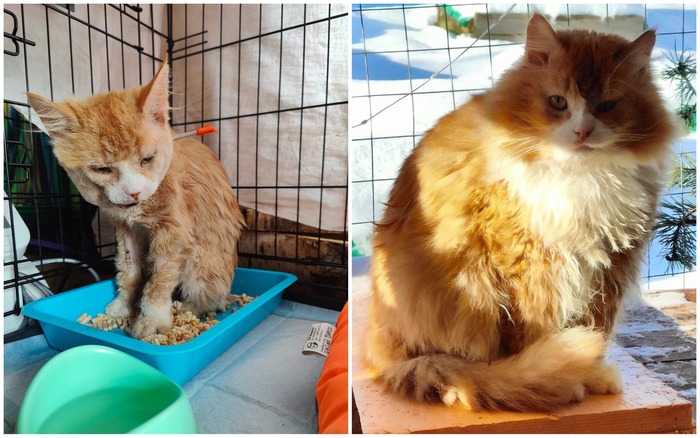Его история такова: большую часть жизни он прожил в семье пожилых людей, которые умерли. После этого перешел как наследство их сыну, который был против кастрации, но за самовыгул у оживленной трассы с хорошим асфальтом. А августе 2024 года его сбила машина и он три дня провел без помощи (https://t.me/irescue/50322). По сути у Рыжа была только переломана челюсть, но хозяин от него отказался. Он прошел операцию (огромное всем спасибо за поддержку), челюсть на проволоке, стому, научился заново есть, так как челюсть работала уже не так, как раньше и многое другое. Спустя полгода беззубый старый Рыж стал знатным морозоустойчивым фаршесосом. И еще он абсолютно не боится пылесоса. Он кот в возрасте, жизнь у него была непростая, сколько он еще проживет - не известно. Но сейчас он отлично проводит свое время.