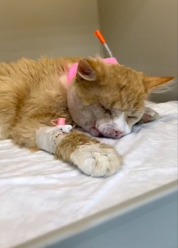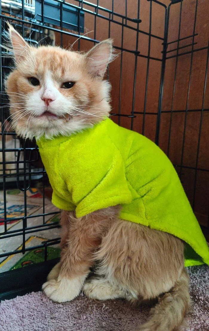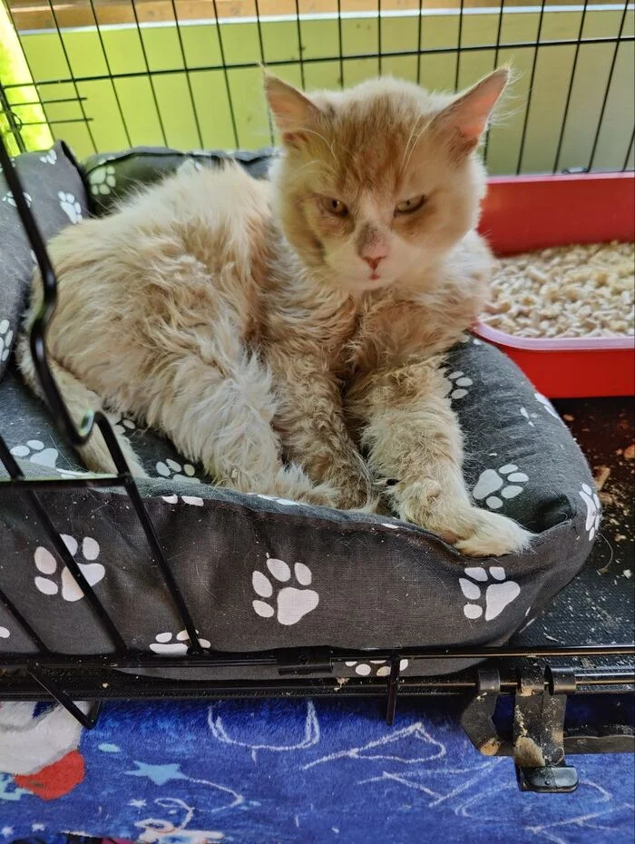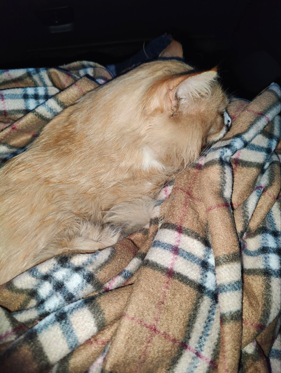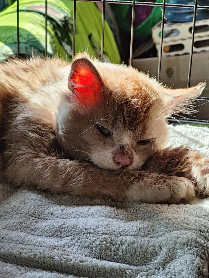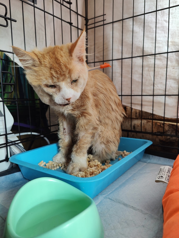 Его история такова: большую часть жизни он прожил в семье пожилых людей, которые умерли. После этого перешел как наследство их сыну, который был против кастрации, но за самовыгул у оживленной трассы с хорошим асфальтом. А августе 2024 года его сбила машина и он три дня провел без помощи (https://t.me/irescue/50322). По сути у Рыжа была только переломана челюсть, но хозяин от него отказался. Он прошел операцию (огромное всем спасибо за поддержку), челюсть на проволоке, стому, научился заново есть, так как челюсть работала уже не так, как раньше и многое другое. Спустя полгода беззубый старый Рыж стал знатным морозоустойчивым фаршесосом. И еще он абсолютно не боится пылесоса. Он кот в возрасте, жизнь у него была непростая, сколько он еще проживет - не известно. Но сейчас он отлично проводит свое время.