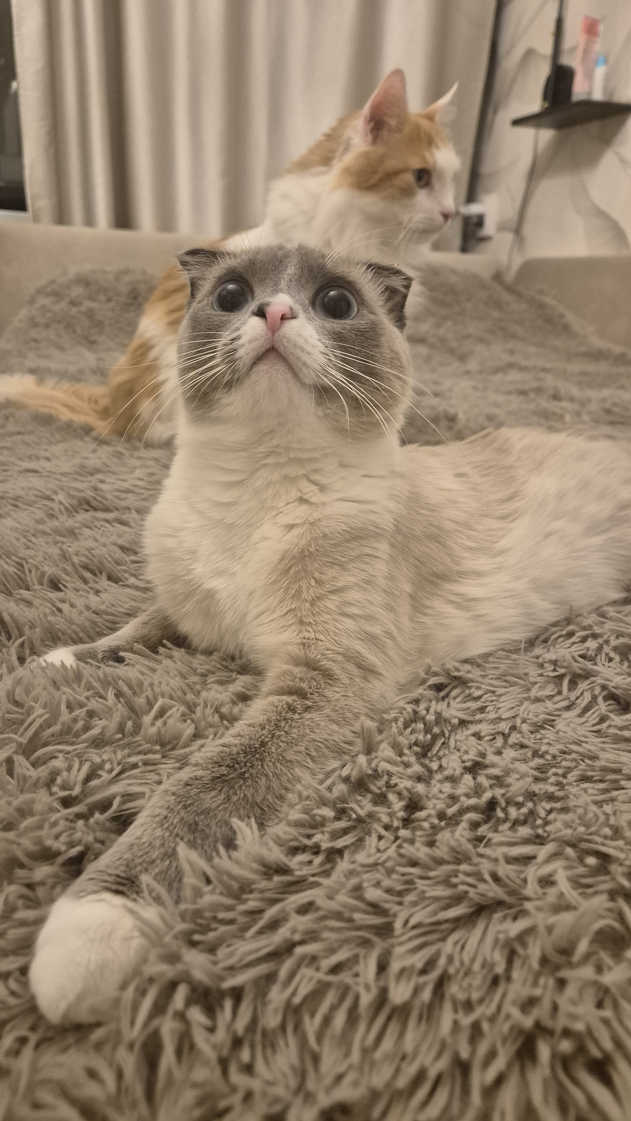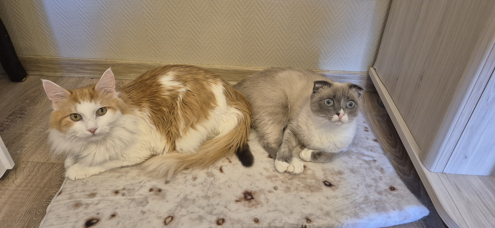 Кошечка - Букля. Она появилась в нашей семье в декабре прошлого года, я про нее делала уже целый пост. Я не планировала заводить вторую киску, но судьба решила иначе, она просто появилась в нашем подъезде, плакала на площадке 5 и 6 этажей (мы живём на 5). Решила оставить, Патрик не возражал)