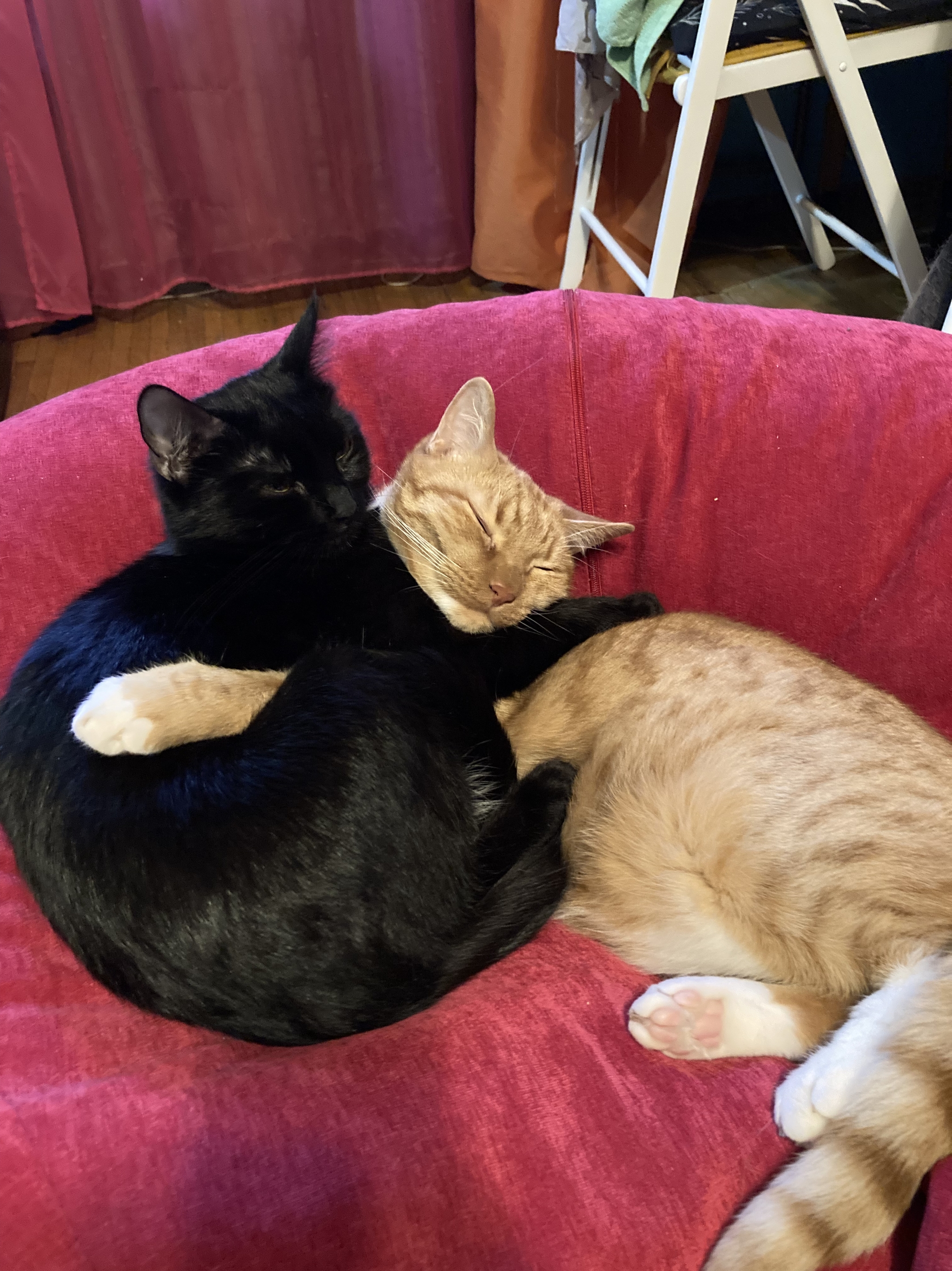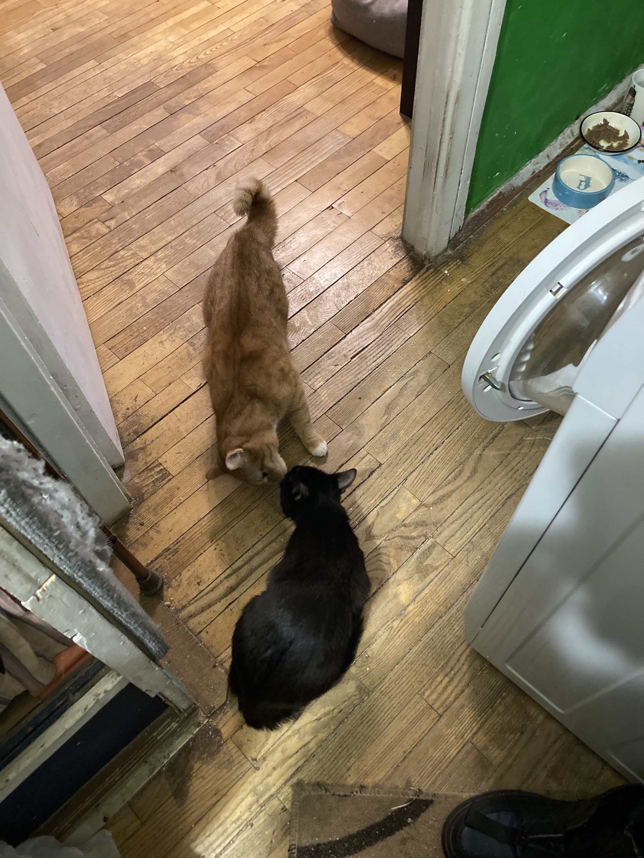 Но я живу с убеждением, что если кот пришел сам, значит теперь это твой кот и нечего сопротивляться. Впустила это чучело в квартиру (очень опрометчиво забыв о всяких кошачьих болячках, но обошлось). Чучело сначала обнюхалось с моим котом, кот внезапно не возражал и спокойно пропустил это недоразумение к своей миске.