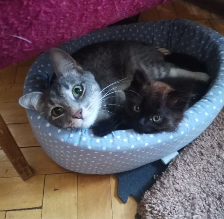 Самая обыкновенная кошка по кличке Алиса, больная атаксией, спасшая котенка Кали (справа) застрявшего в колесе автомобиля. (тут подробности Ответ на пост «Судьба»)