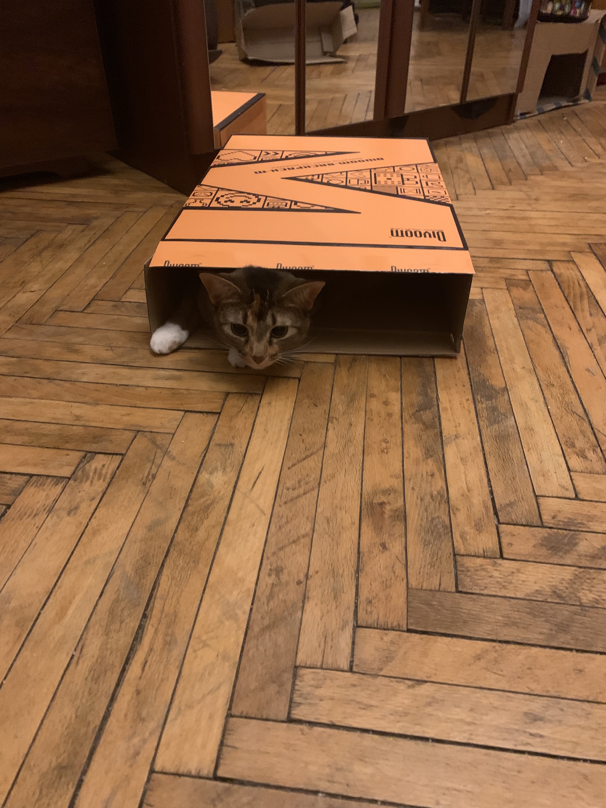 Ну и традиционно - вот вам кошка-объебошка в новой коробке. На заднем плане две забытые старые)