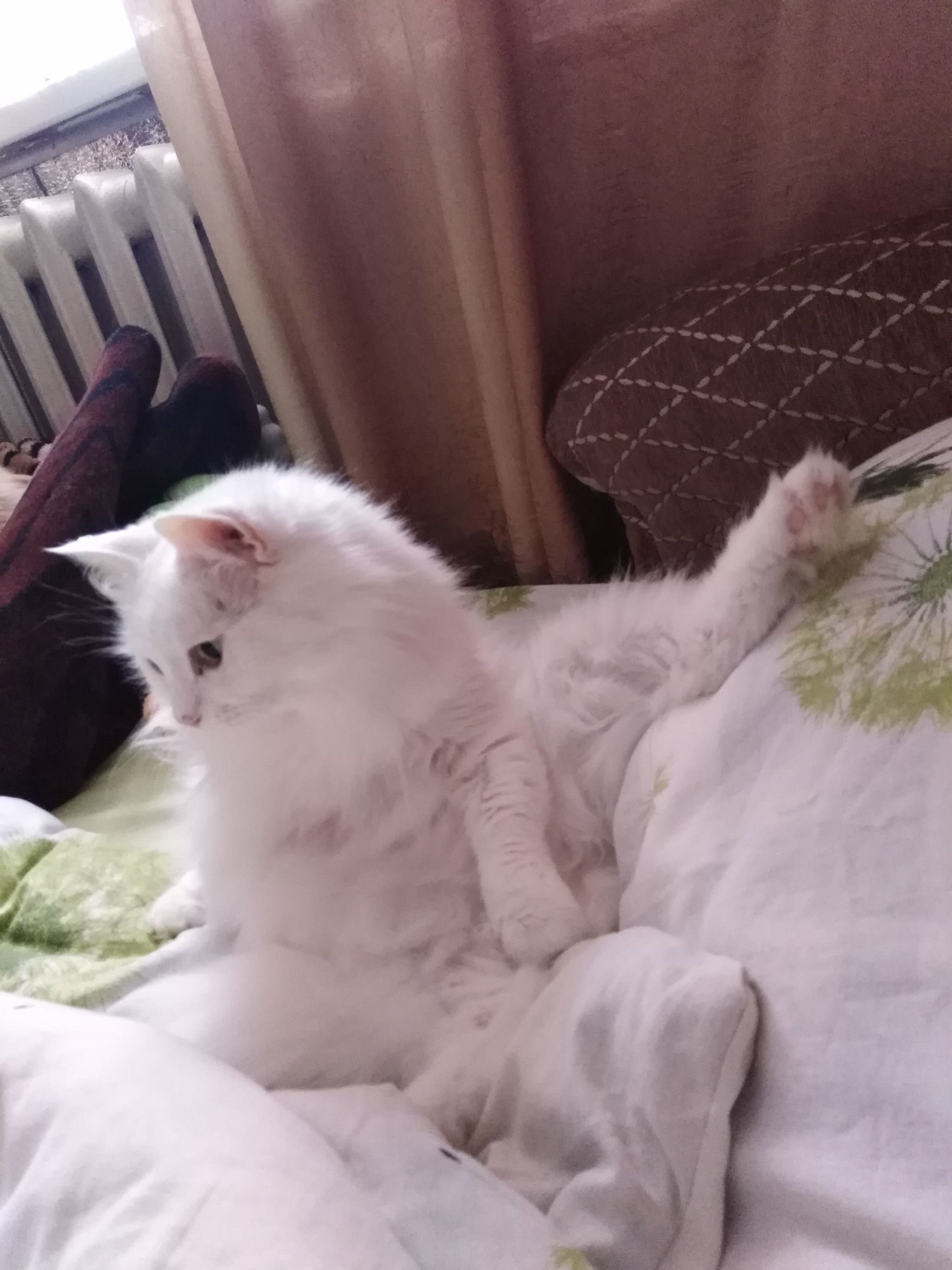 Не разрешала в спальню заходить называется. Просыпаюсь, открываю глаза - сидит, сияет. Розовая пятка на подушке. Это Гоша.
