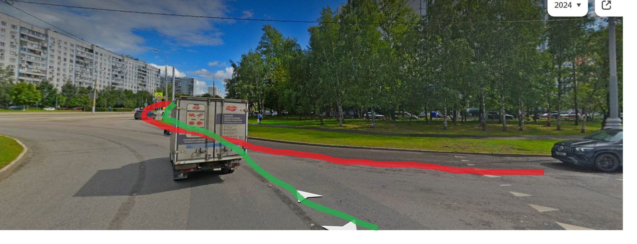 Есть вопрос. У меня тут есть кольцо, на котором постоянно возникают коллизии. Если ехать по красной траектории в соседний выезд, то часто возникают съезжальщики из третьего ряда по зеленой траектории. Траектории пересекаются примерно вот в показанном месте на схеме. И Зеленые начинаютутверждать, что их надо пропускать. Кто прав и в каком моменте красная машина считается уже едущей по внешней полосе круга и не должна уступать тем, кто едет по внутренней?