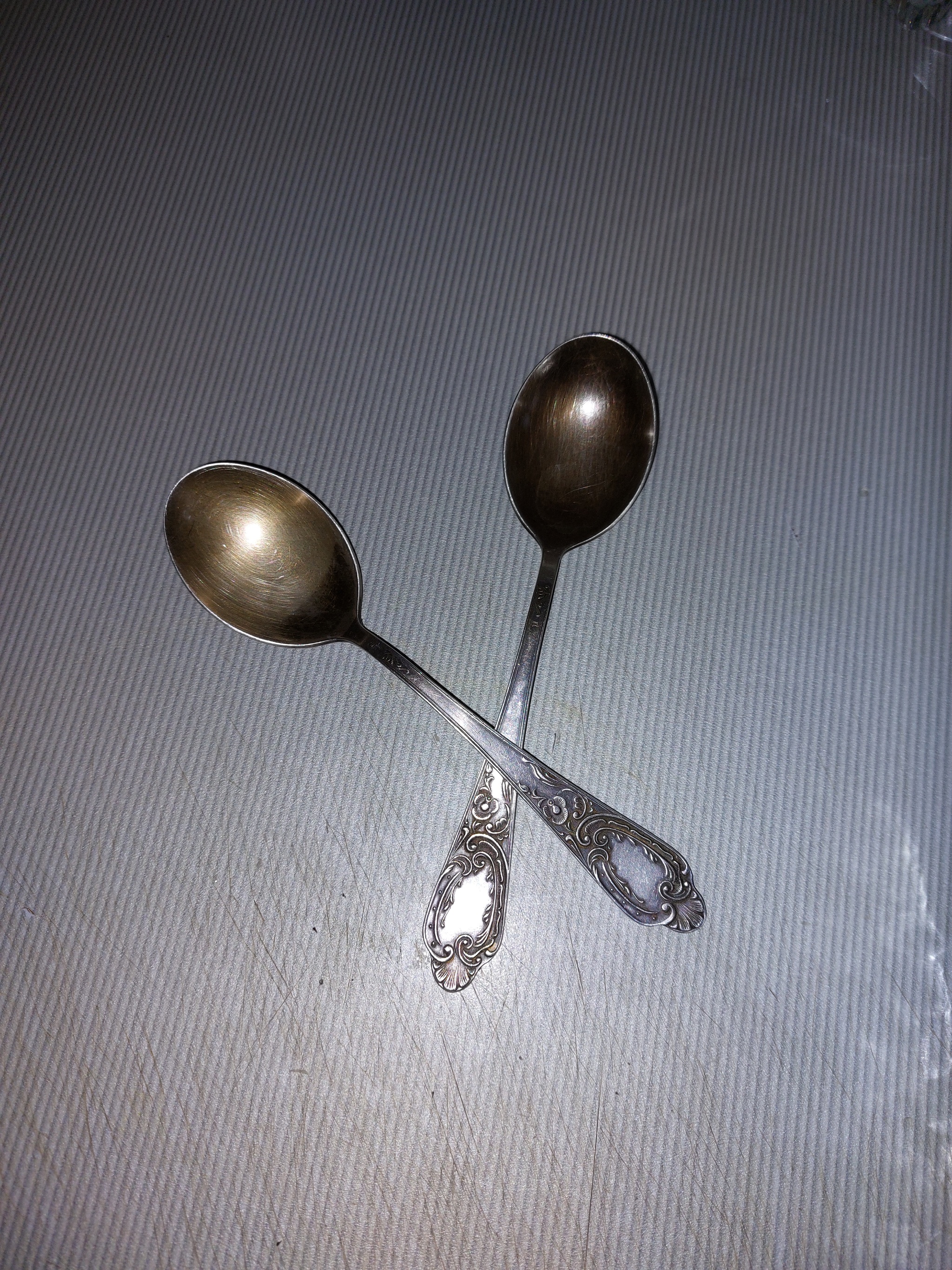 Я свои чищу с помощью соды и алюминиевой фольги.