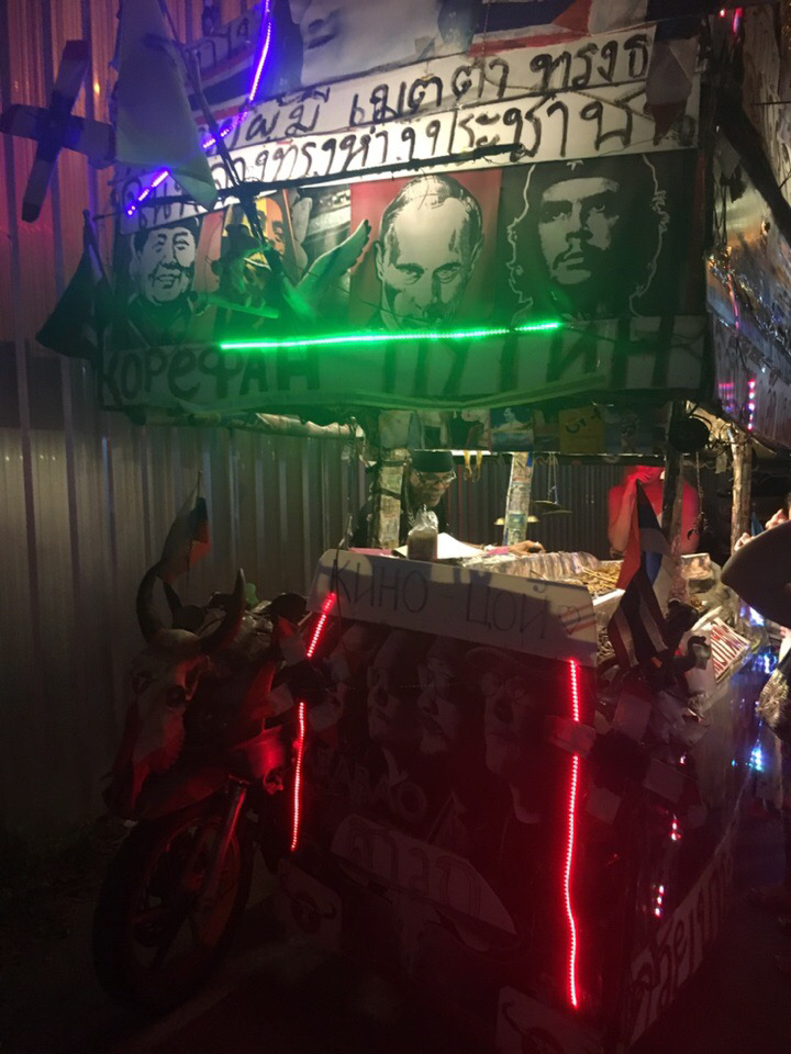 В Тайланде жили в Паттайе, недалеко от смотровой площадки и Будды, на побережье. Там почти каждый вечер по улочкам ездил такой старичок с сушеными гадами, на ломаном русском покрикивал «русские, друзья мои», «Цой жив» и всякое такое)) И музыку включал, что-то вроде из Цоя же, точно не помню, а видео не осталось)