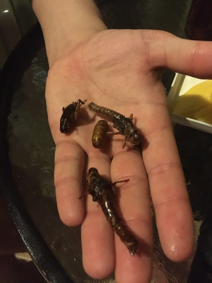 Тараканов меня не заставили съесть, попробовала только траву какую-то сухую в приправе, на фото она в пакете)