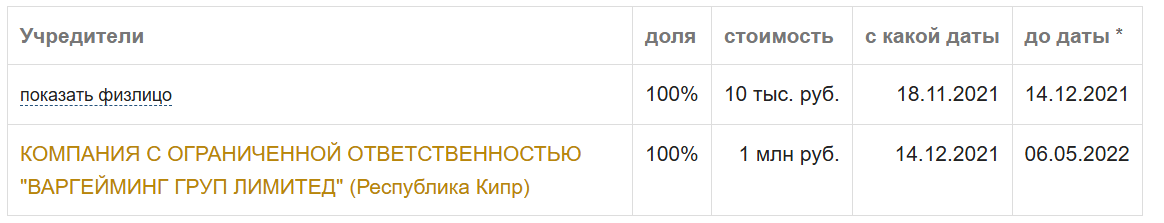 Инвесторам выплатили? Авотхуй - там в списке учредителей всего один хуй и сама "варгейминг" и уставной капитал - лям.