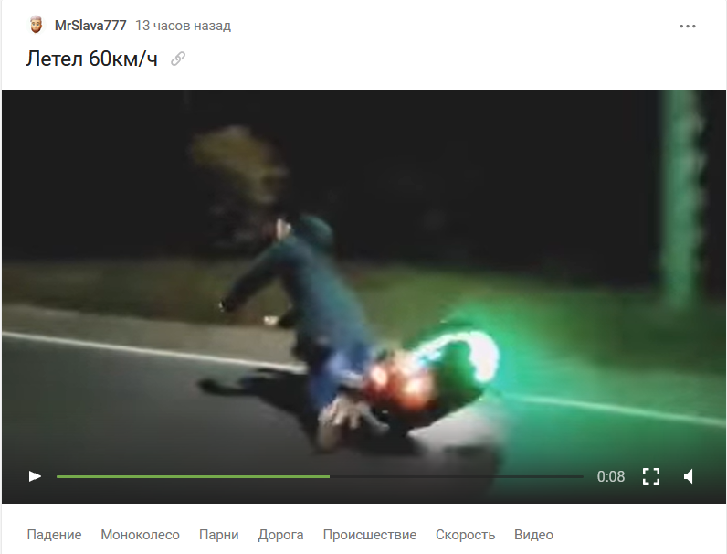 KotTriac 3 года назад Ответ на пост «Летел 60км/ч»4 Тот редкий момент, когда реклама, как продолжение ролика Падение Моноколесо Парни Дорога Происшествие Скорость Видео Ответ на пост Ещё 0