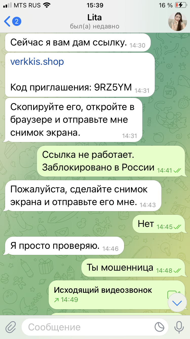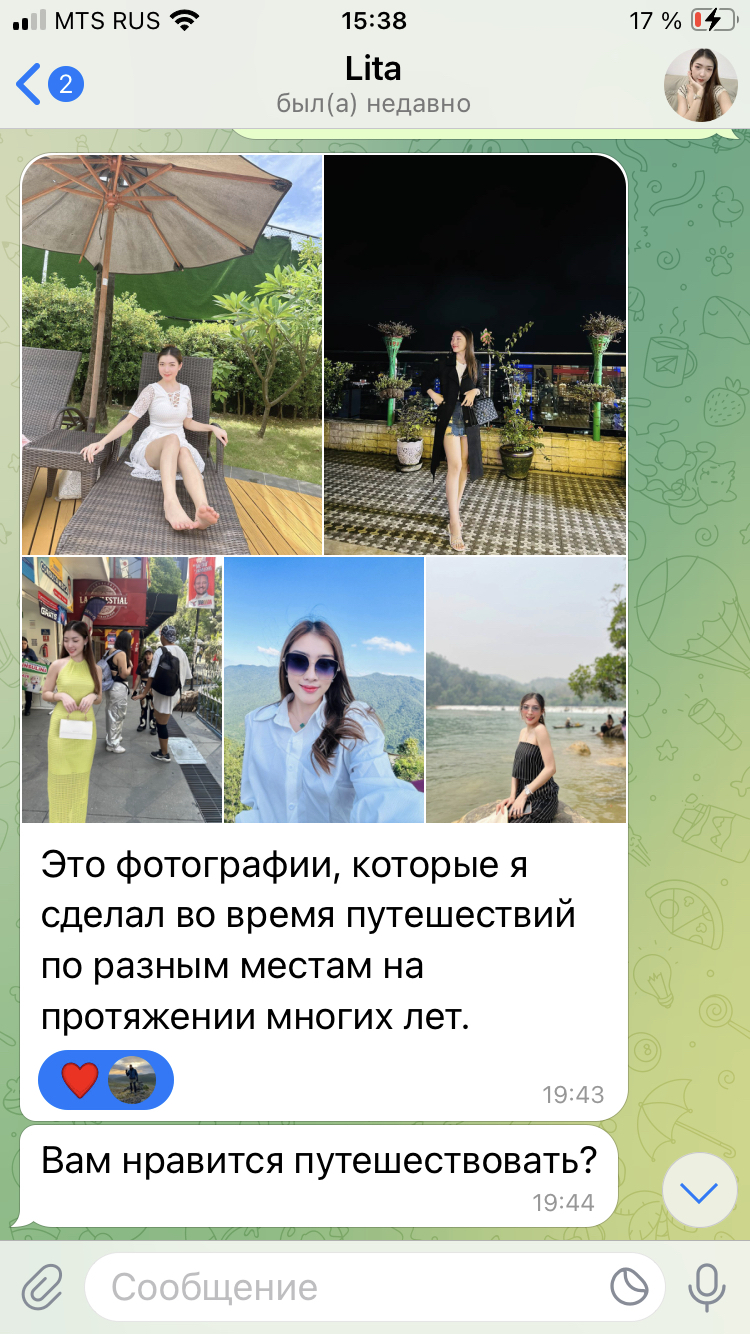 Буквально только что закончил общение с подобной особой. Девушка из Сингапура, постучалась в Телеграм. Пообщались. Три дня ничего не просила. Я ждал когда же она проявит себя. Задушевные истории и т.д. Кривой перевод на русский. Наконец она скинула ссылку на ее магазин одежды, чтобы я поставил 5 звезд магазину. Но поисковики не нашли такой магазин. Я пошел дальше и начал ей звонить по видеосвязи в телеге. Она не брала сначала трубку, но потом сама перезвонила. Поговорили. Красивая азиатка, не особо похожая на ту, что на фото. Я объяснил, что существует такая схема мошенничества. Она ответила, что плохое соединение и ей нужно найти wi fi. Попрощались с ней. Больше она не перезванивала. Общение наше закончилось.