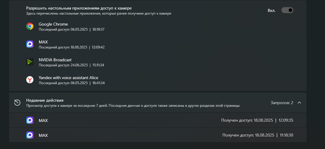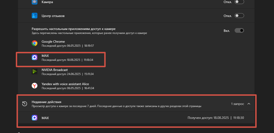 UPD 2: автор исходного поста покопался глубже в ситуации Часть 2: MAX использует камеру (десктоп)