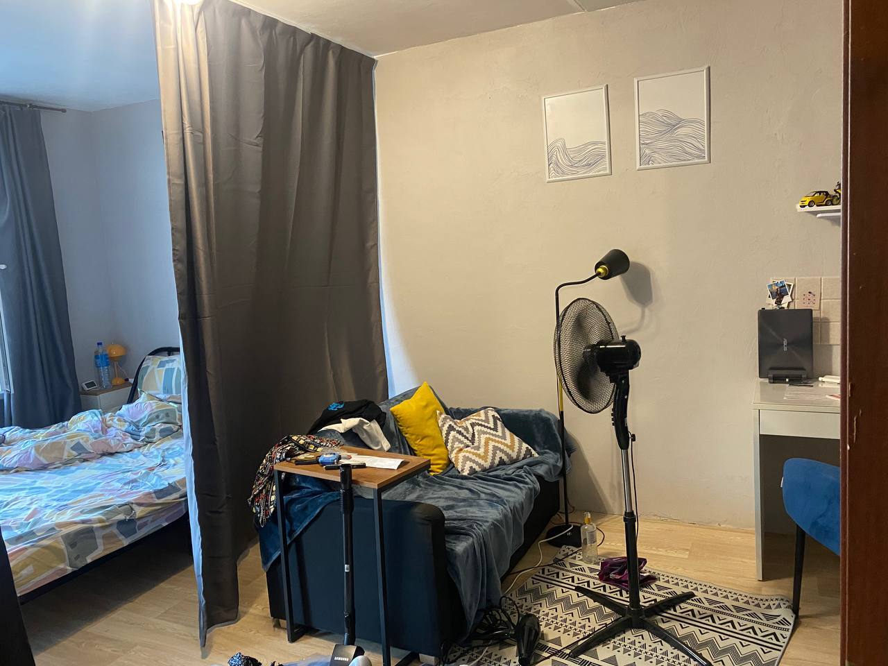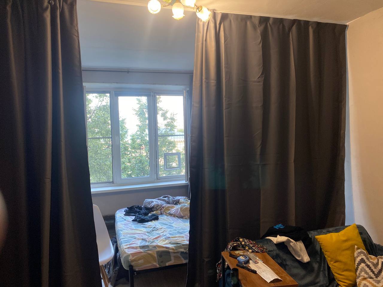 Цель была сделать из однушки недо-двушку с минимальными затратами и условием, что мы живем в этой квартире, то есть супер сложные работы, вроде поднятия полов, сделать не выйдет.