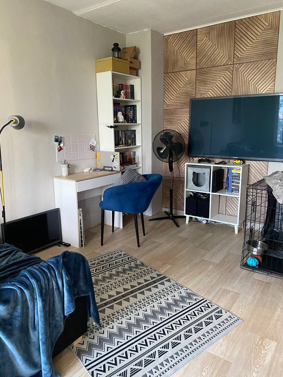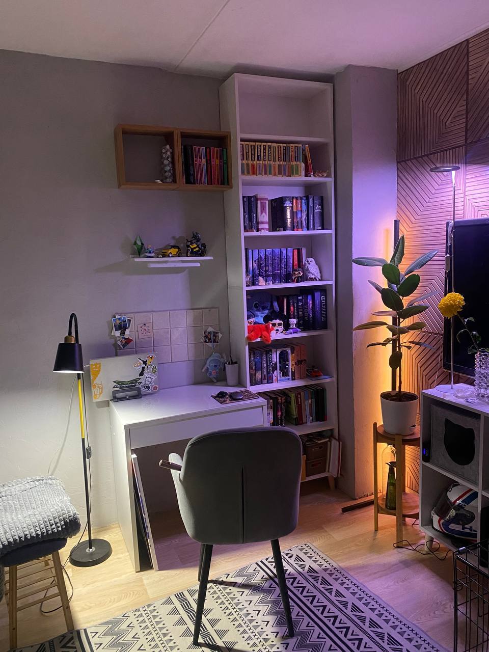 После этого этапа получилось чуть выдохнуть и я рьяно взялась за декор: мы наклеили панели, появился диван, ковер, всякие мелочи
