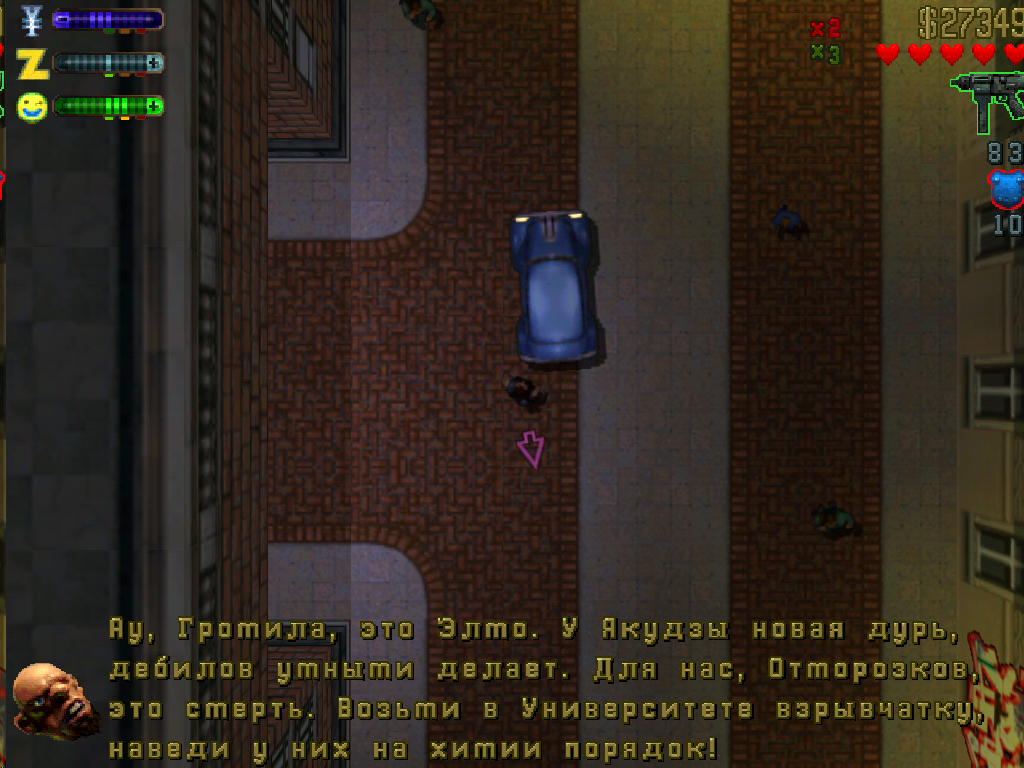 Огромнейшие извинения за столь дикий увод темы, но ностальгия пробила и меня. Моё знакомство с серией игр началось с GTA 2. И никакая другая часть сильнее меня не восхитила (правда, первую так и не нашёл). Ну где ещё возможны такие моменты?! Как не в игре с такой механикой и графикой?