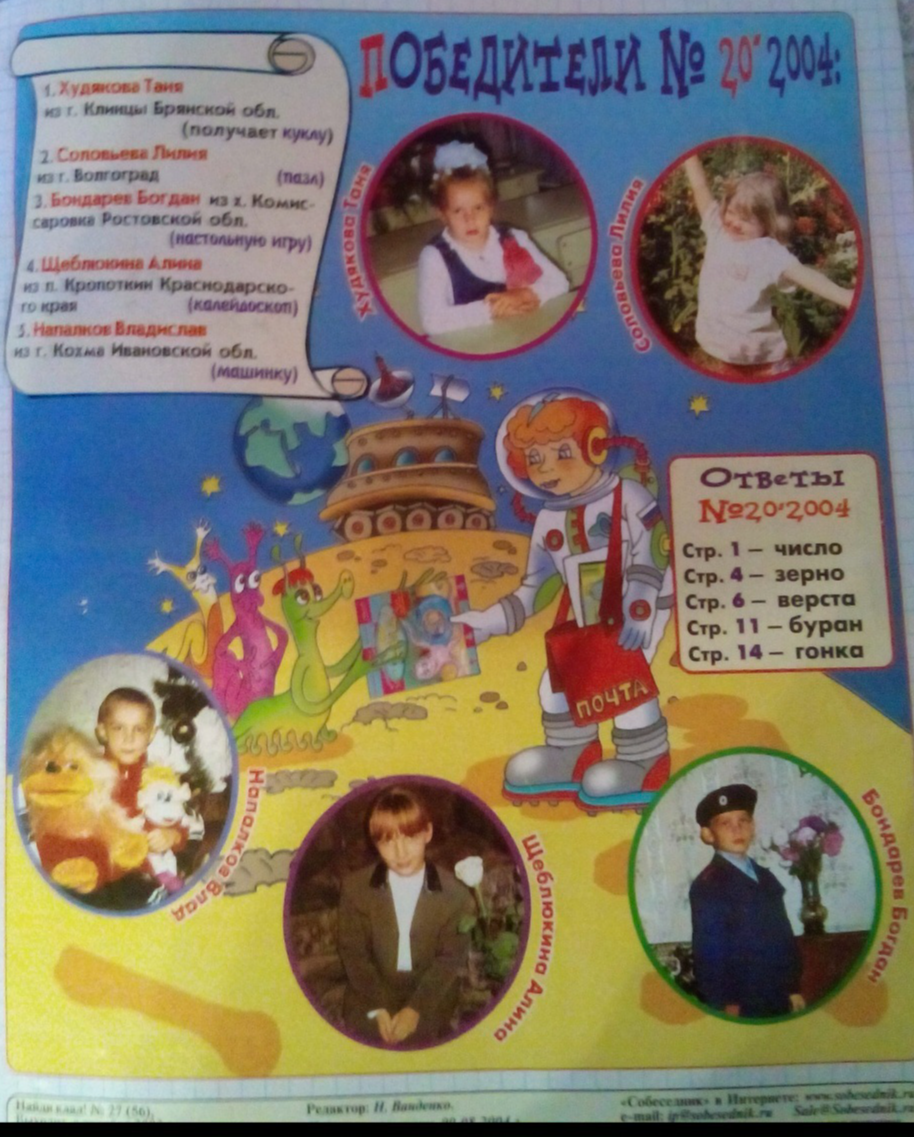 Был когда-то давно детский журнал "найди клад". Ну и ради интереса отправили ответы на их загадку. Какова же была моя радость, когда увидела среди победителей своё имя!