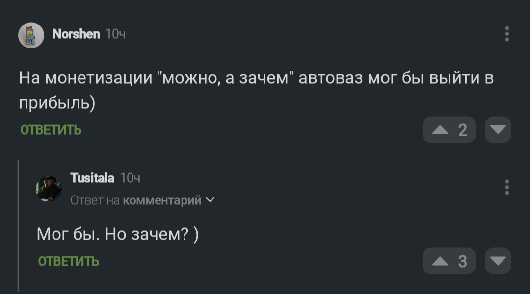 10 ABtank Ответ на пост «Можно а зачем ?»1 1 месяц назад #comment_381658701 Можно а зачем? АвтоВАЗ Реклама Москва Ответ на пост 6 2 Ещё 0