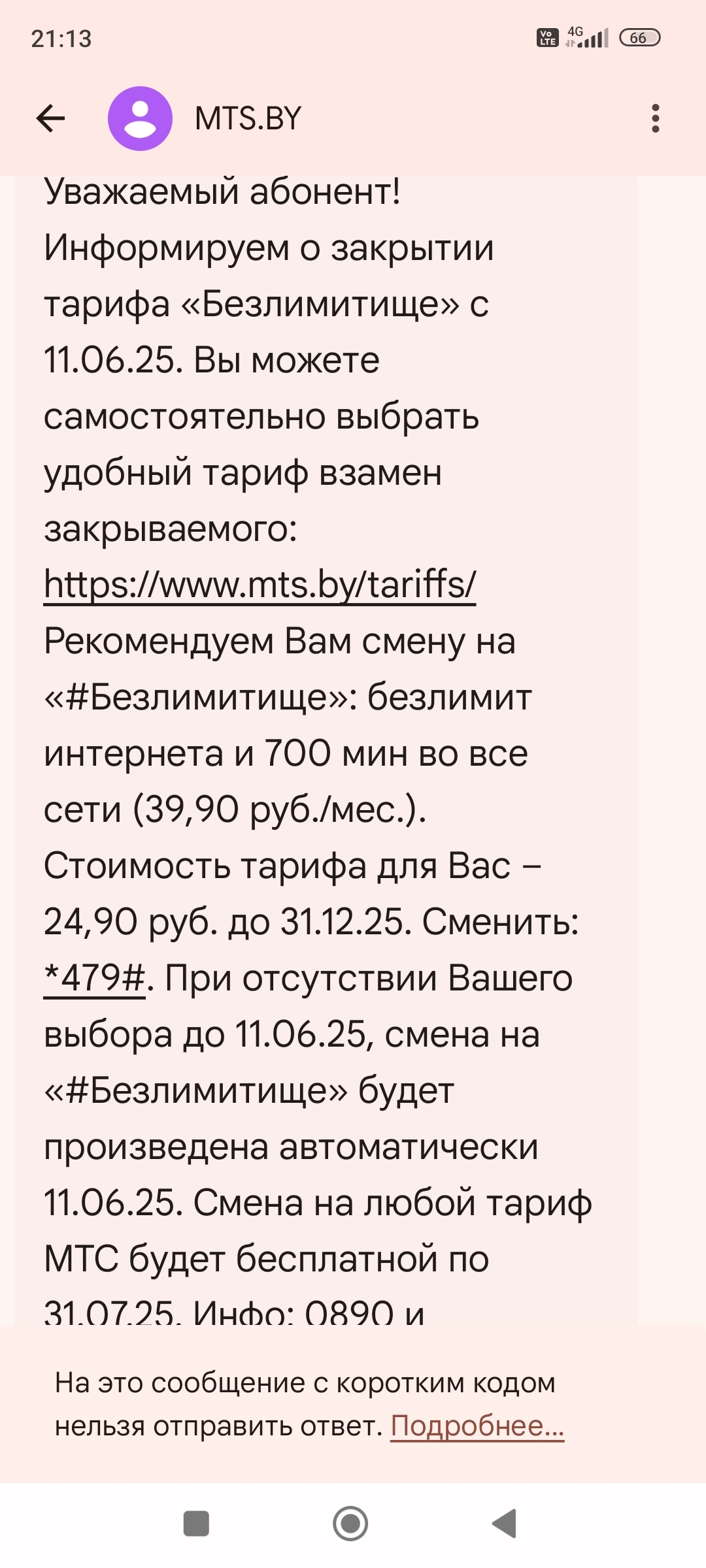 Ответ на пост «МТС (Республика Беларусь) закрывает тариф "Безлимитище"»1