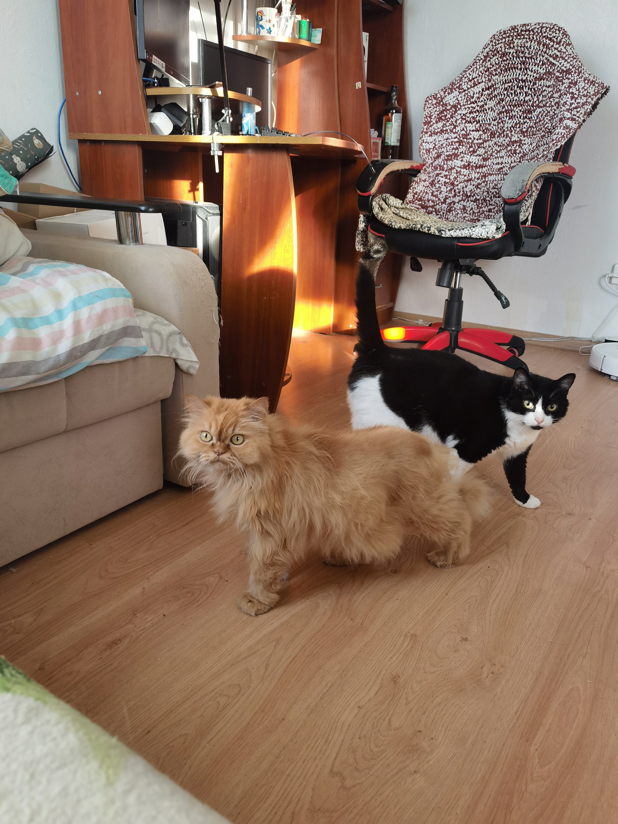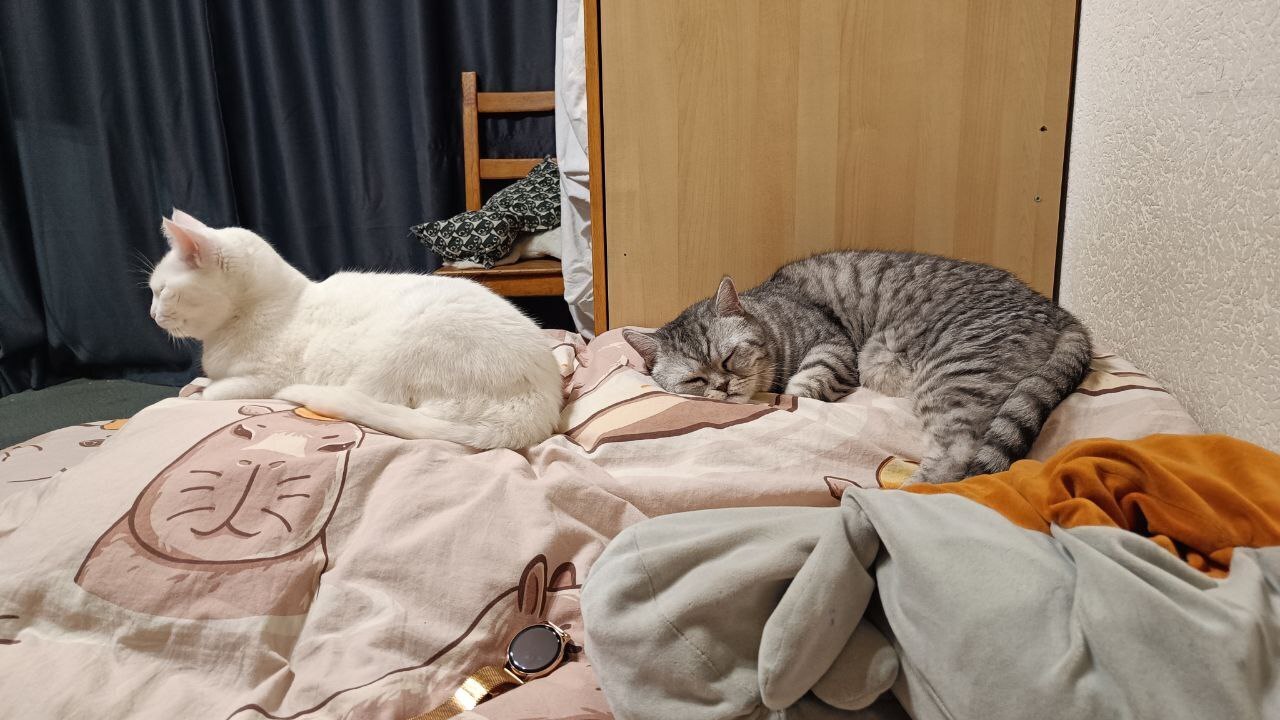 Кстати, у меня аллергия. Мне приходится почти каждый день пылесосить и протирать пыль, иначе я буду чихать и обматываться соплями, иногда я просыпаюсь с опухшей хлебницей и чихаю половину утра. Котаны особенно не лезут ко мне в объятия, хотя иногда я их таки отлавливаю для обнимашек, спят отдельно, за что им большое спасибо, но неизменно доставляют мне своими выходками, память моего телефона на 90 процентов состоит из их фото и видео.