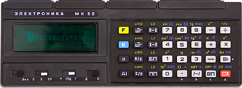 Я вот на этом в 10 лет начал. Весч! 105 шагов программы, 15 регистров памяти и ещё четыре регистра стек. Игры были на нём даже реалтаймовые - учебный полёт, гонки на санях. И пошаговые - охота на LIS. Блок расширения памяти был - флэшка по-нашему. Кто на нём считать пытался всегда удивлённо спрашивал "а где равно?"