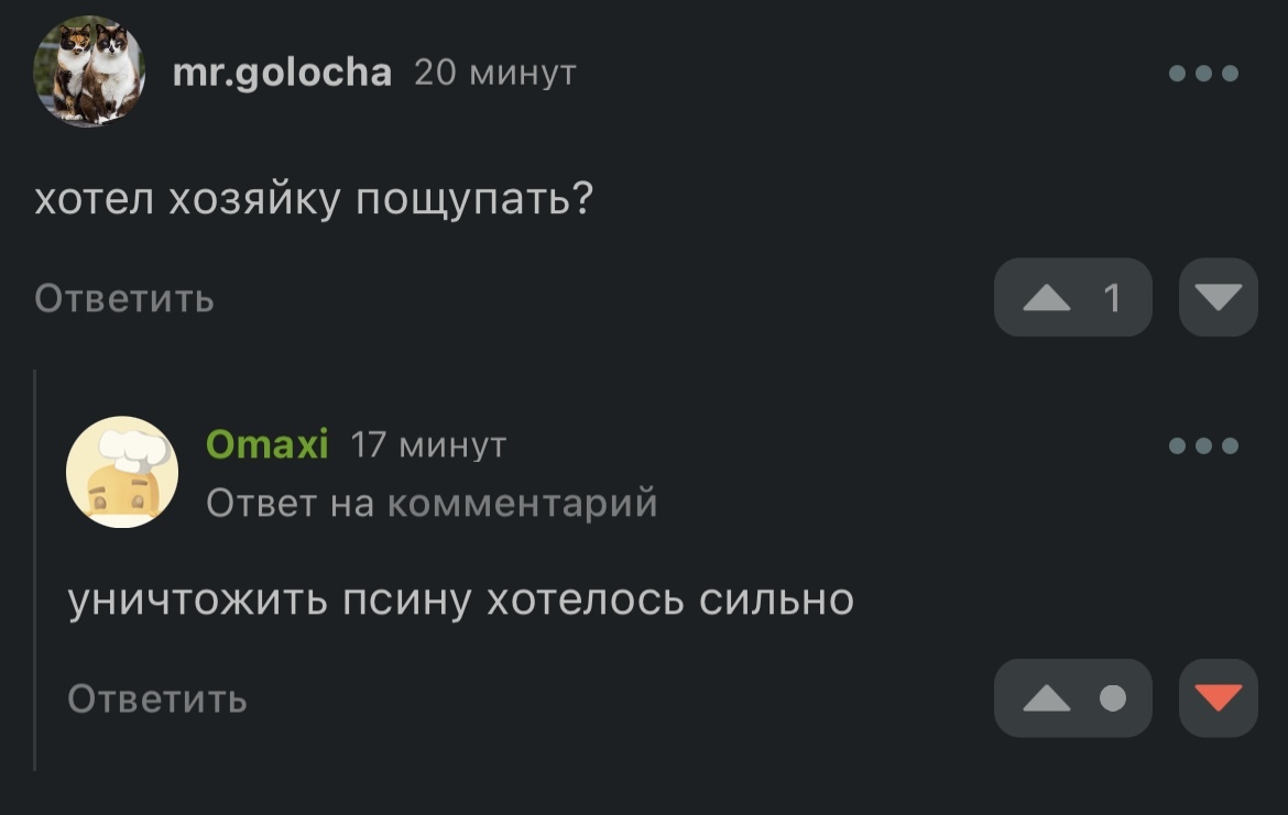 Вот, если бы данный пост был написан более корректно, без оскорблений, и максимального негатива, я бы даже поддержал. У самого в детстве была собака из молоссов. И меня не отпускали с ней гулять одного, лет до 14, пока я не стал крупным лбом, который может ее удержать. Безопасность и тд и тп. Но, когда читаешь такое извержение ТС, видимо, направленное на хайп от недавней темы, невозможно воспринимать это чтиво нормально. Я понимаю термин «зоошиза», как неадекватное поведение. Но все его пытаются применить к людям просто хорошо относящимся к животным, или просто к тем, кто является хозяином животины) Тогда как называть таких агрессивных неадекватов? Зоошизофреники?) «Уничтожить псину» ему хотелось сильно…