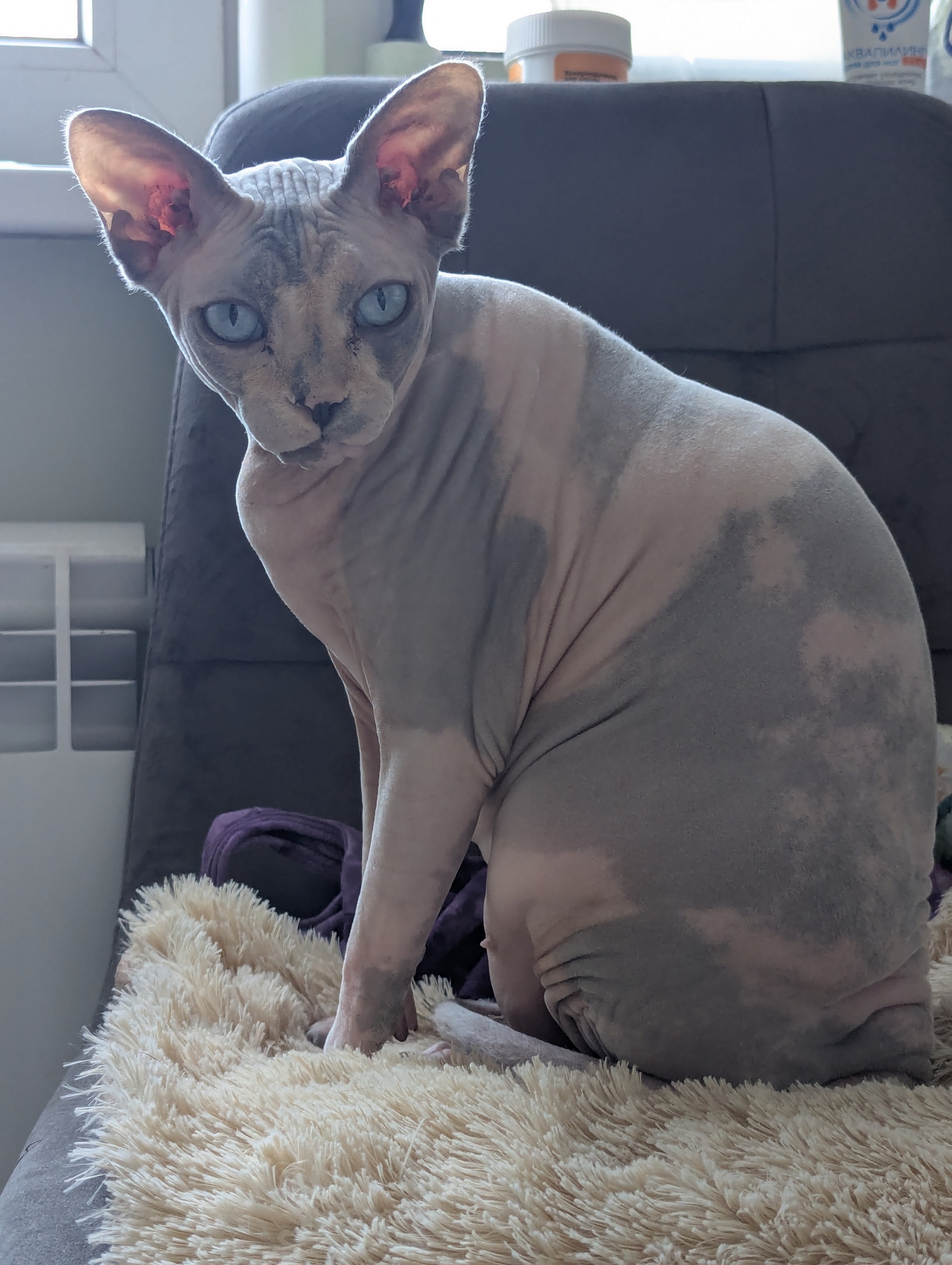 Единственное, со стулом проблем нет, и на том спасибо. Но у меня живёт еще сфинкс, купленная на авито 6-месячной у частника как раз. Никаких проблем, кроме поноса на неподходящий корм никогда не было. Она даже не такая мерзлячка, как все сфинксы.