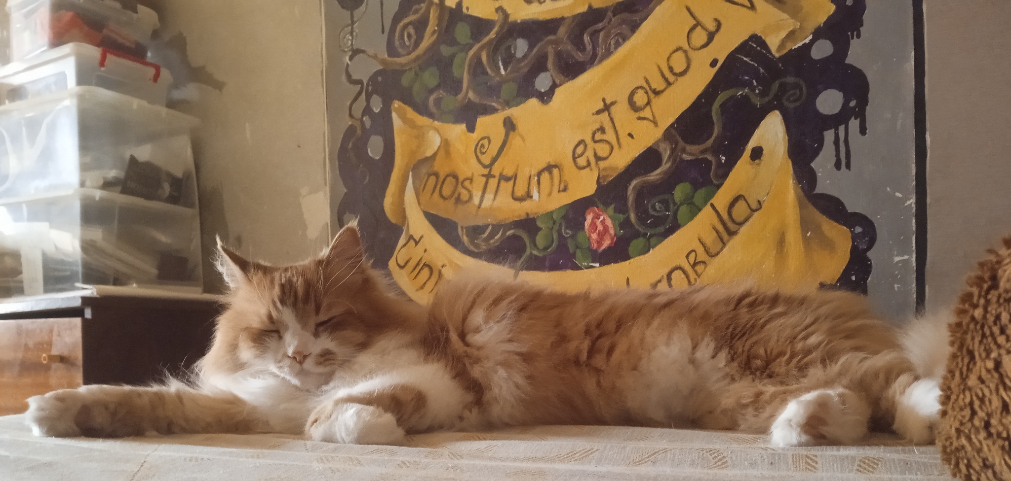 Изольда, матриарх, 22 года, карманная котика. Ворчательница 80 лвл и Оратор набалконный. Чемпион Раскополог в легком весе (3кг)