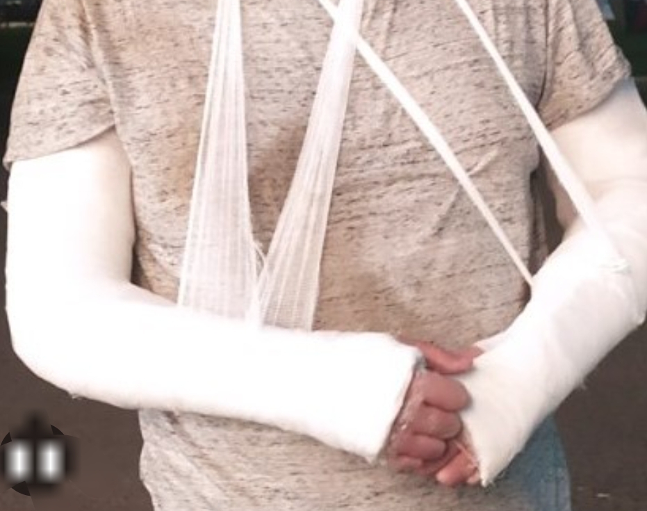 Ехал трезвый, загляделся, упал. Итог локоть в труху. Собрали хорошо. Хирург сказал ему что ещё чуть-чуть и хана нервам. Был бы как Сталин с трубкой.