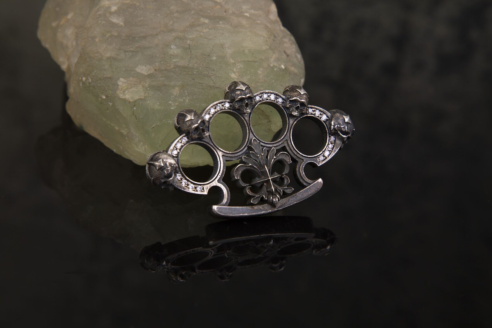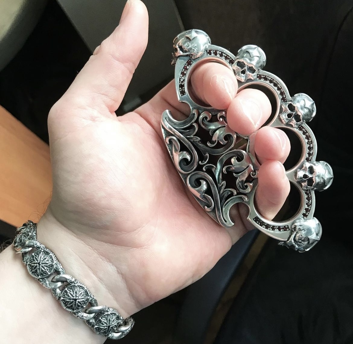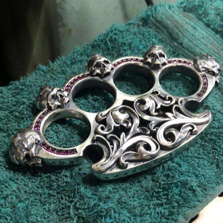 Немного о ювелирном искусстве. Как из обычных вещей можно сделать что то красивое. Например кастет из серебра с черепами и рубинами.