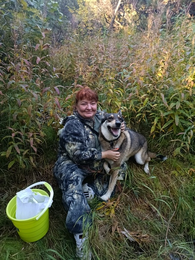 Там сука молодая есть, чуть больше года, дворняжка по типу овчарки, чуть выше колена, очень ласковая.